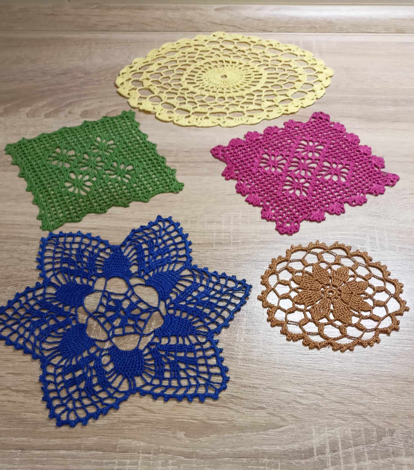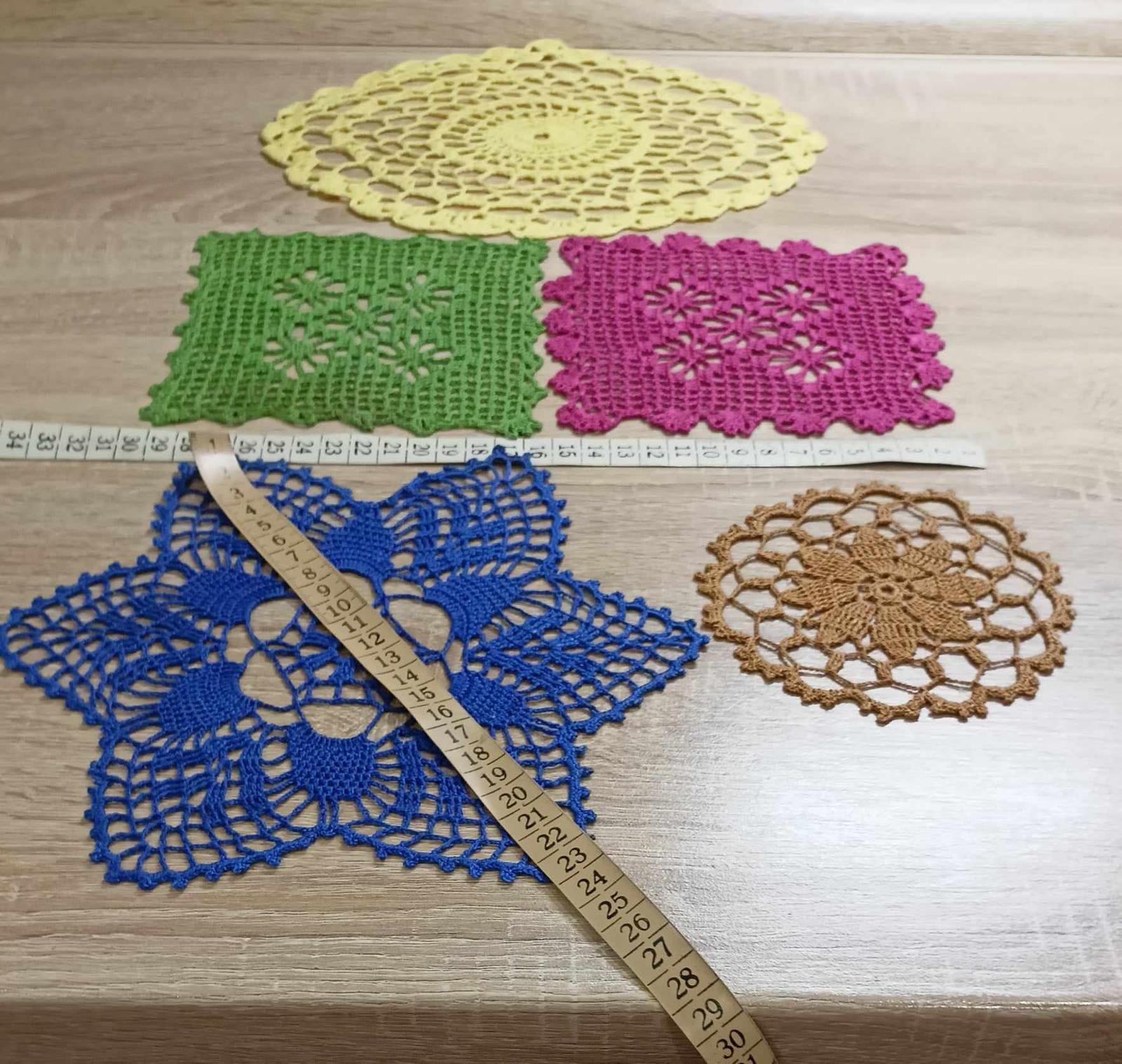 Malé háčkované farebné dečky, 5 ks
