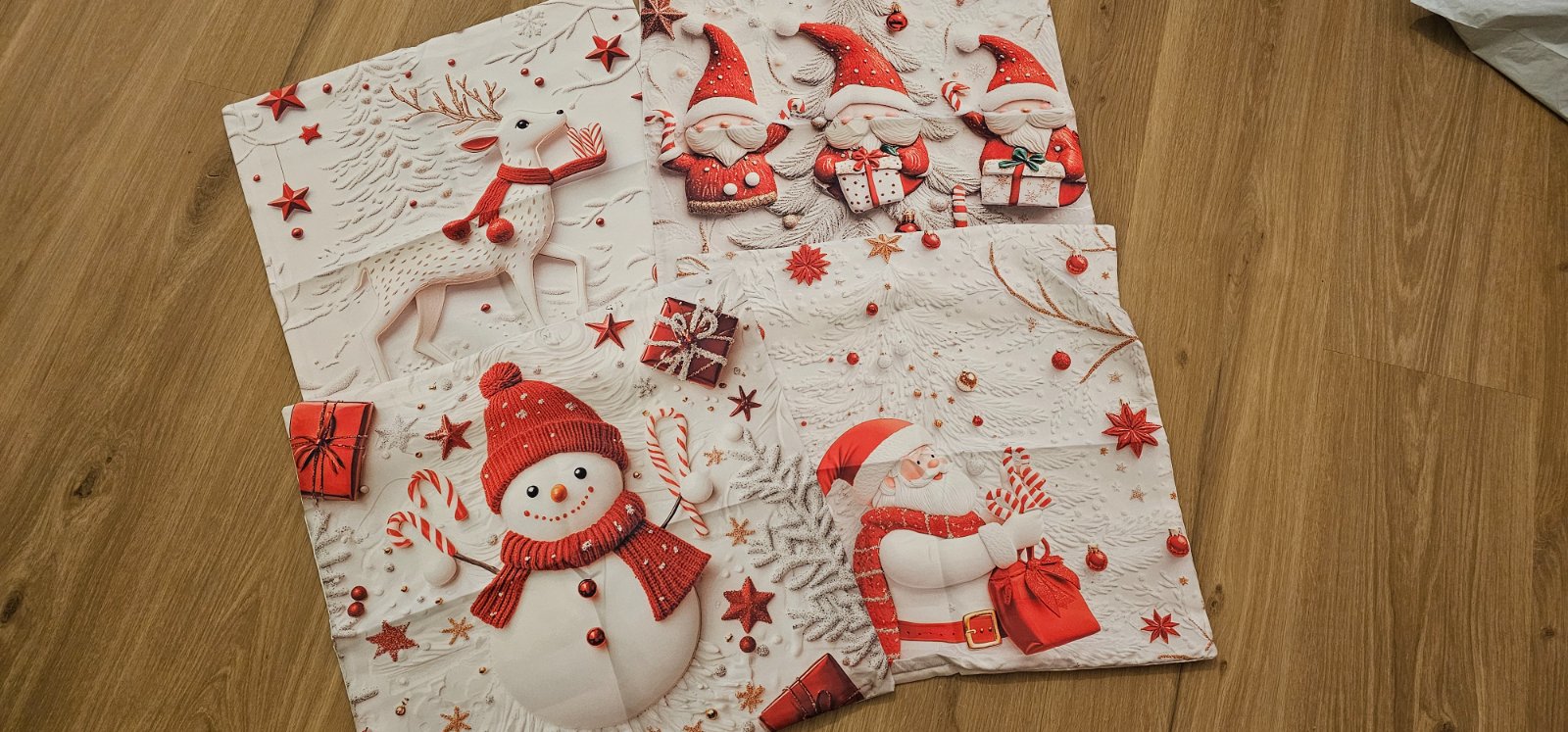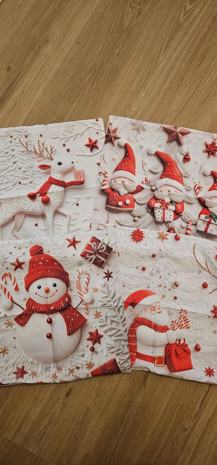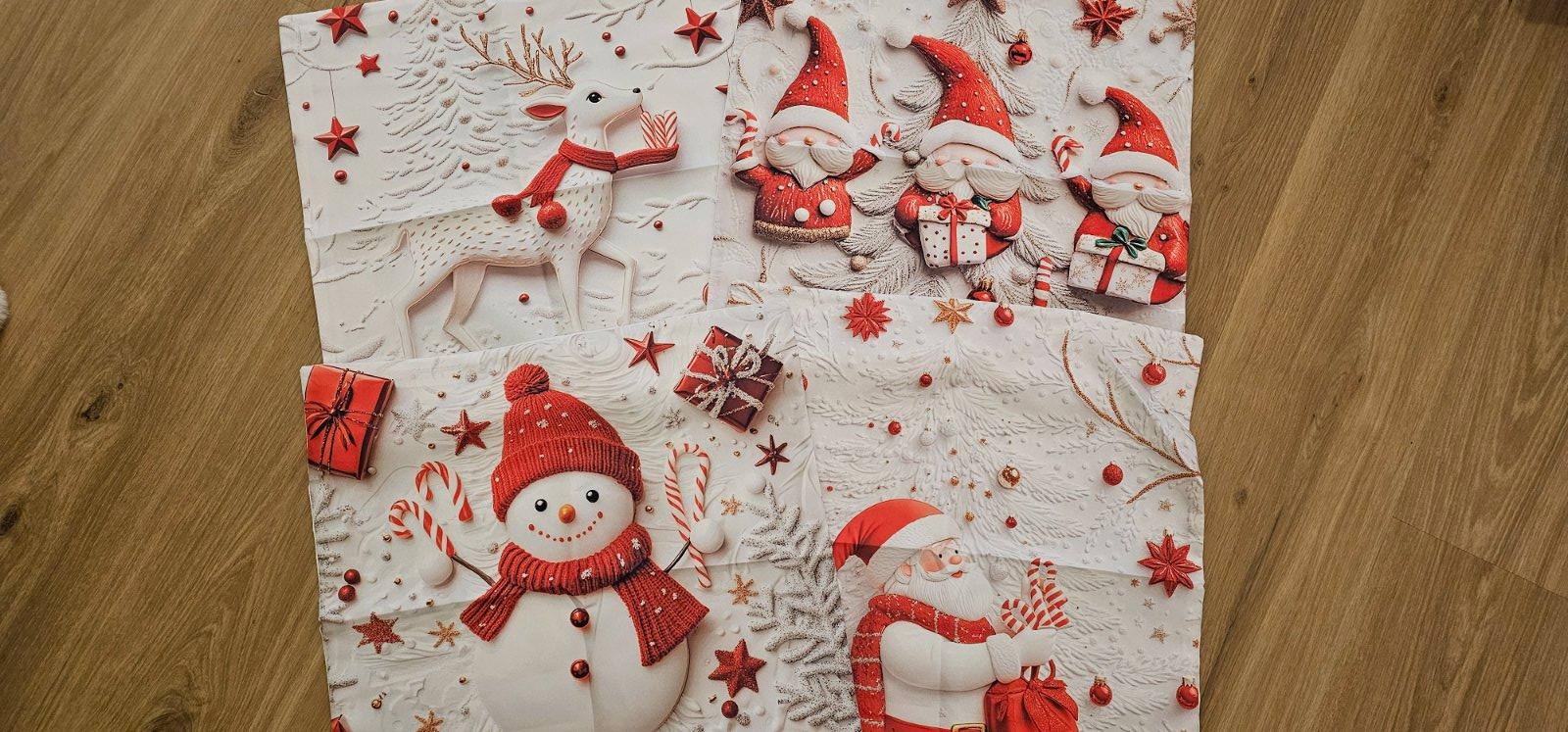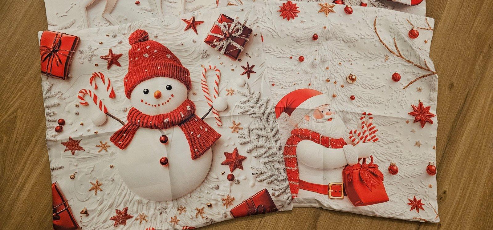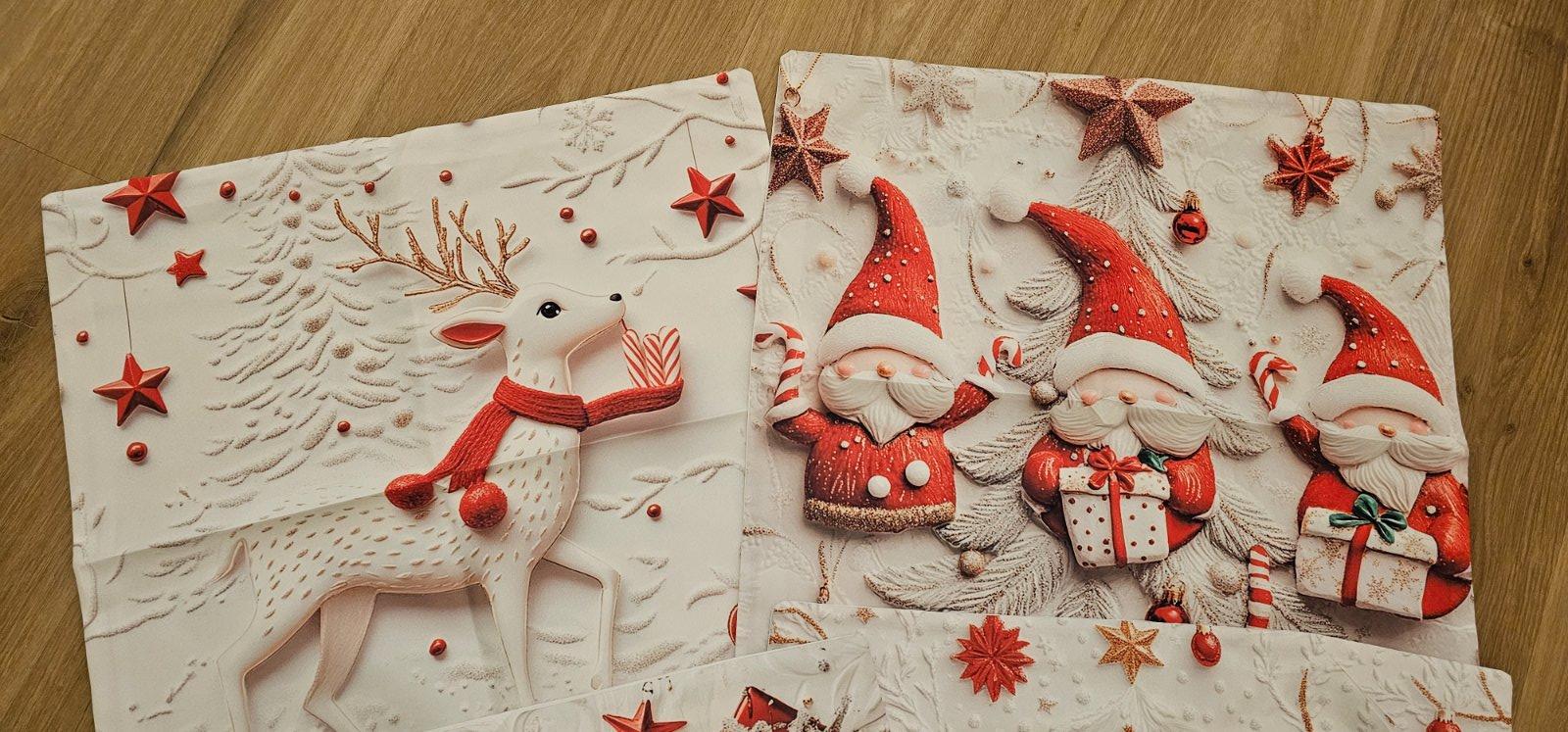 Bielo červené obliečky na malý vankúš s vianočným motívom, zapínanie na zips, rozmer 45×45 cm. Cena za sadu 4 ks