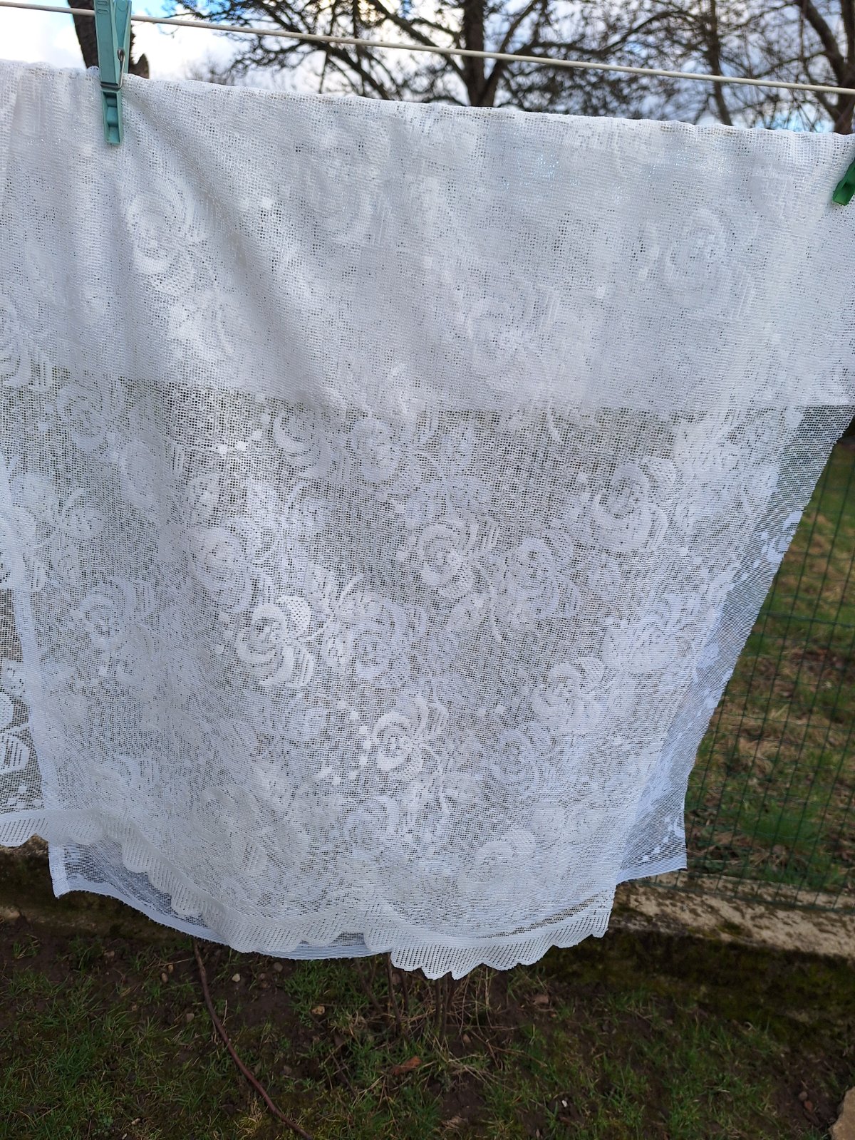 Ponúkam silonovu vyšívanu a lemovanu záclonu výška je 147 cm a šírka. 3,80 cm raz použitá mam toho veľa