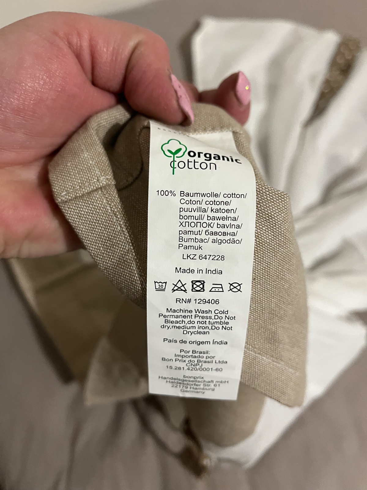 Bielo-hmedá kombinácia, na fotke pokrčená.