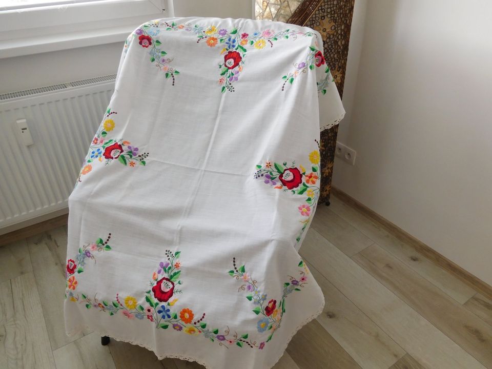 Ponúkam na predaj obrus vyšívaný ručná výšivka o rozmere 143 x 123 cm, obrus nebol nikdy použitý TOP TOP stav-CENA+POŠTOVNÉ.