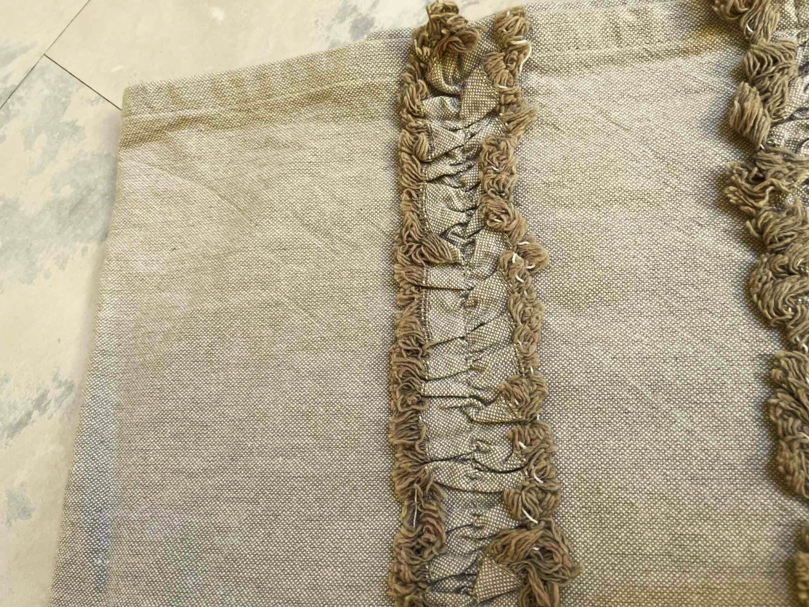 min. používaný zaujímavý obrus ražnej ľanovej naturálnej farby s nevšedným detailom,100% bavlna,40 x 140 cm