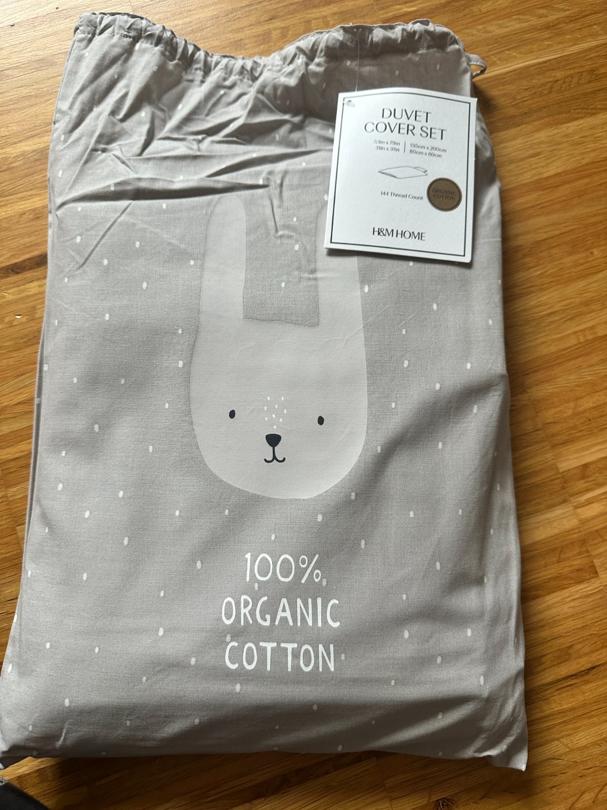 nové ešte zabalené, 100% organic cotton, krásne. Perina bodkovana a vankuš v tvare zajačika.