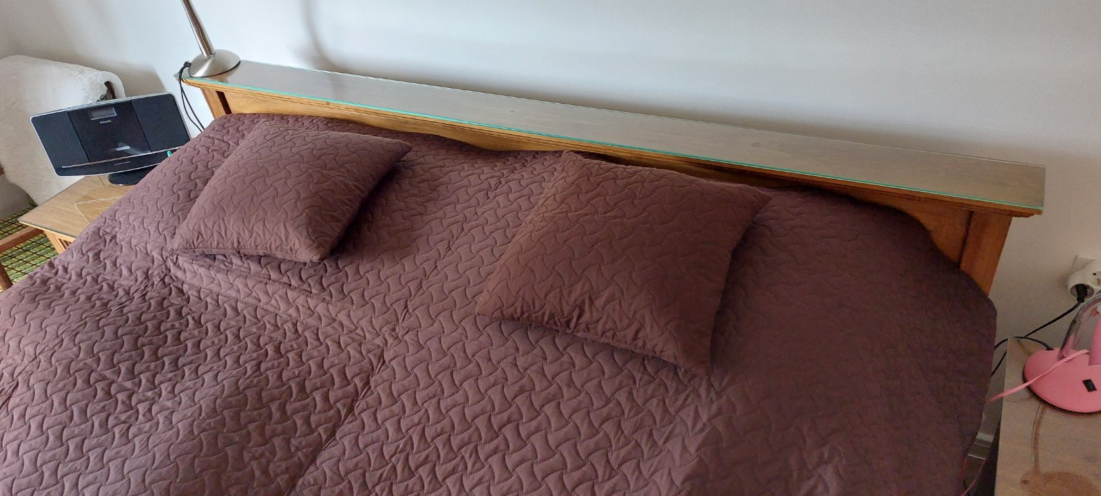 Tmavohnedý prehoz na posteľ + 2 obliečky na malý vankúš 40×40 cm, bez poškodení.