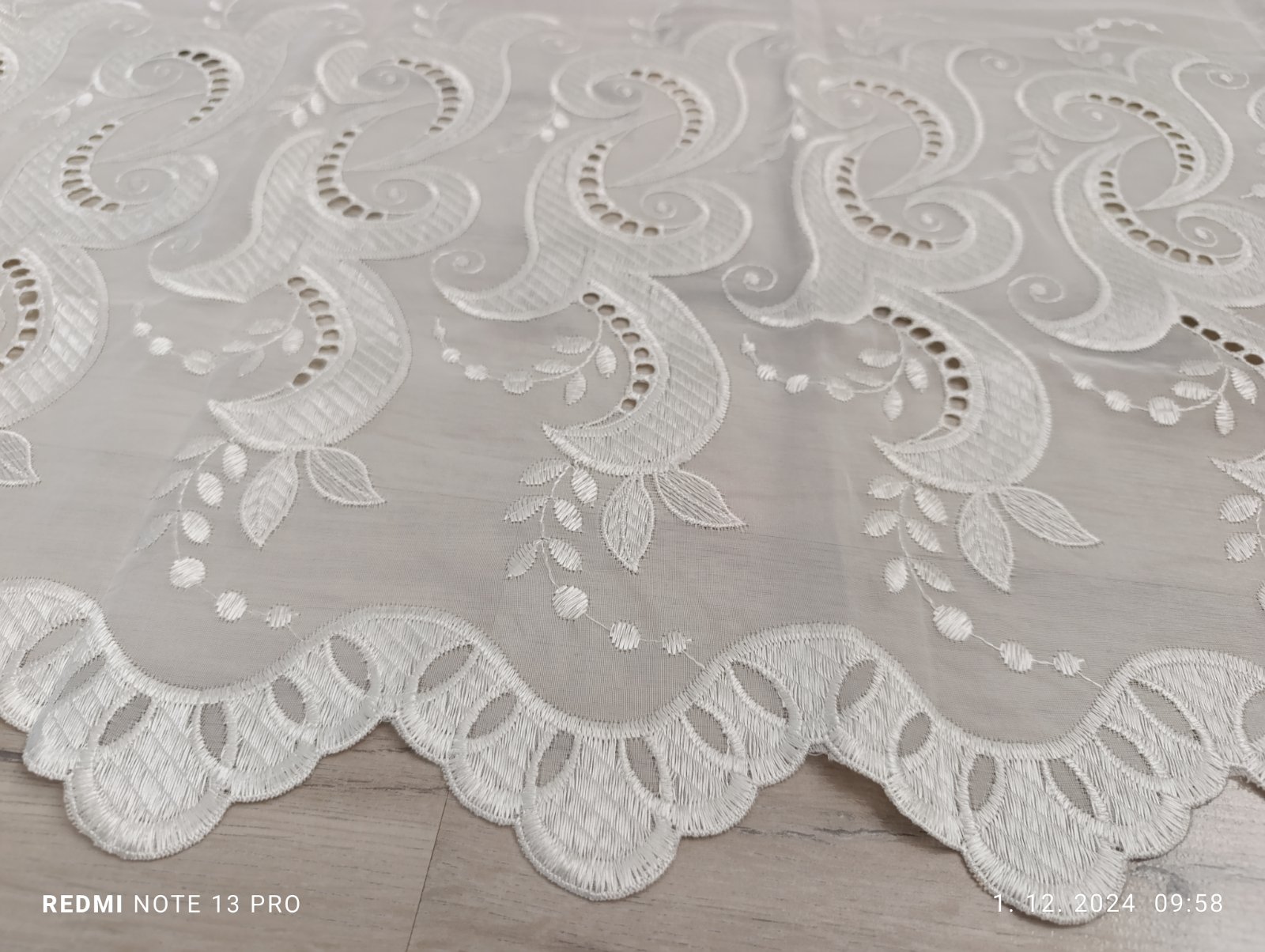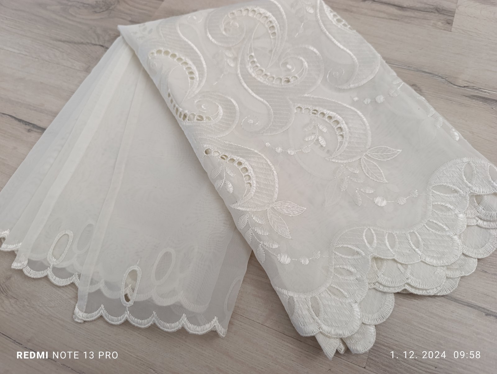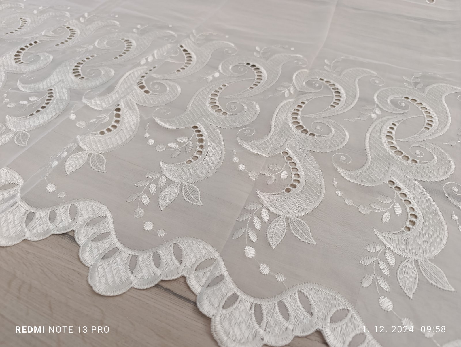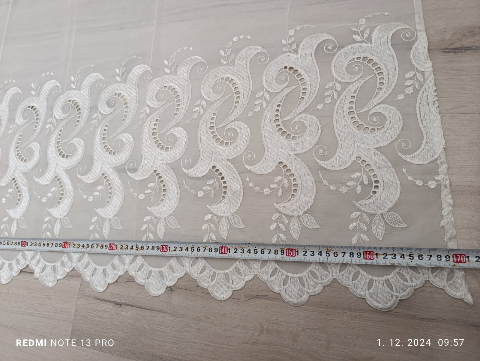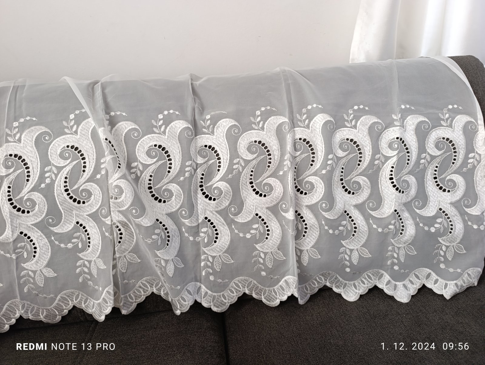 Vyšívaná voálová záclona. Je kvalitná, v top stave ako nová. Má otvory na garnížu... Pri výmene 10€