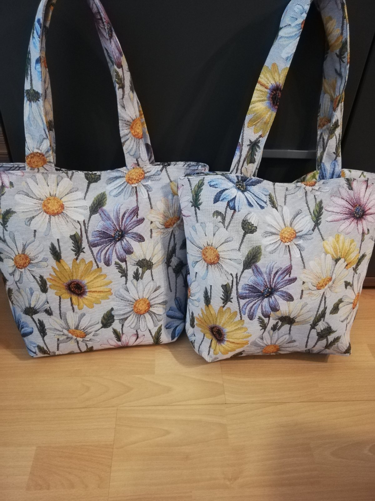 Tasky gobelinove, na magnet zapínanie 18 eur podsite dekorácnou látkou, dnu je vrecko na drobnosti, vankúšiky 40 /40 cm 11 eur ks