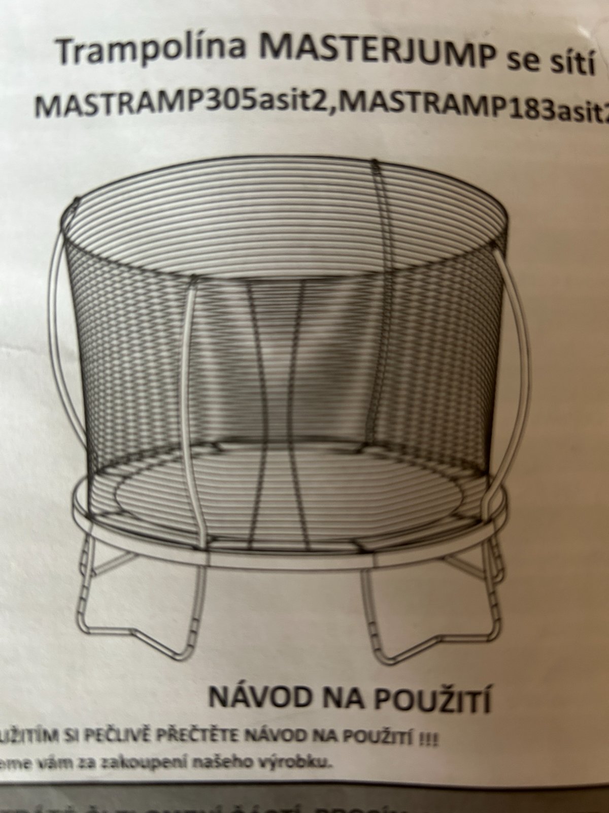 Ochranná sieť trampolíny s priemerom 305 cm. výška konštrukcie siete od zeme 256 cm priemer oporných tyčí 25,4 mm a hrúbkou 1,2 mm uchytenie k trampolíne pomocou objímok X nosný kruh siete z laminátu s priemerom 12,7 mm