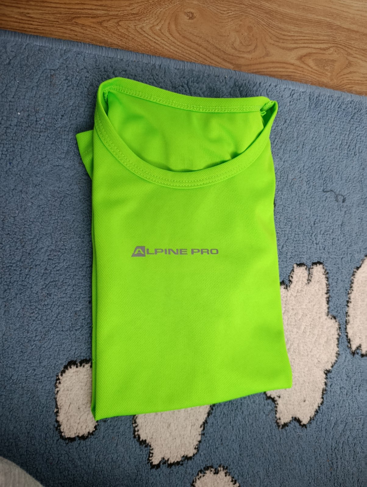 Tričko originál Alpine pro pár krát oblečené športové funkčné tenké , veľkosť 140/146 má v zadu jedno zadrapnutie viď foto a vpredu tiež maličkých bodiek je to taký materiál ako funkčné tričko takže kto pozná vie. Farba je kriflavo zelena nedá sa mi to poriadne odfotir
