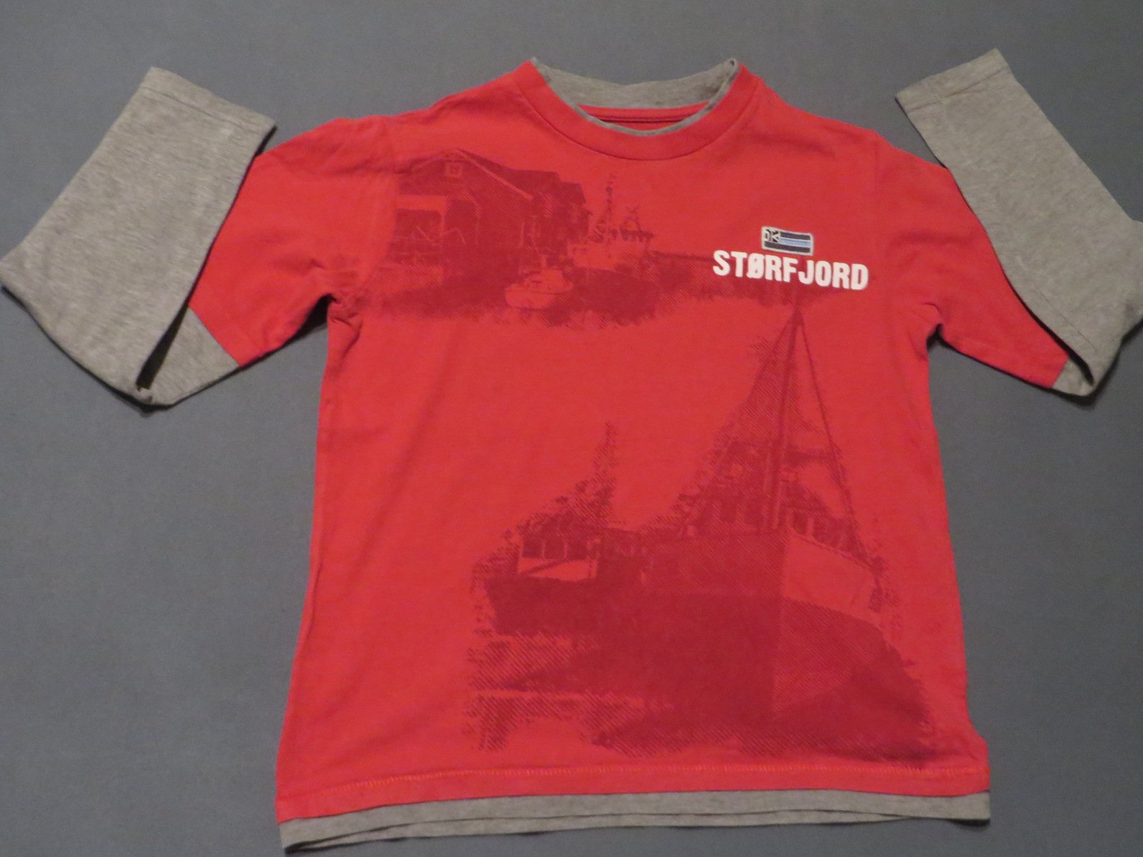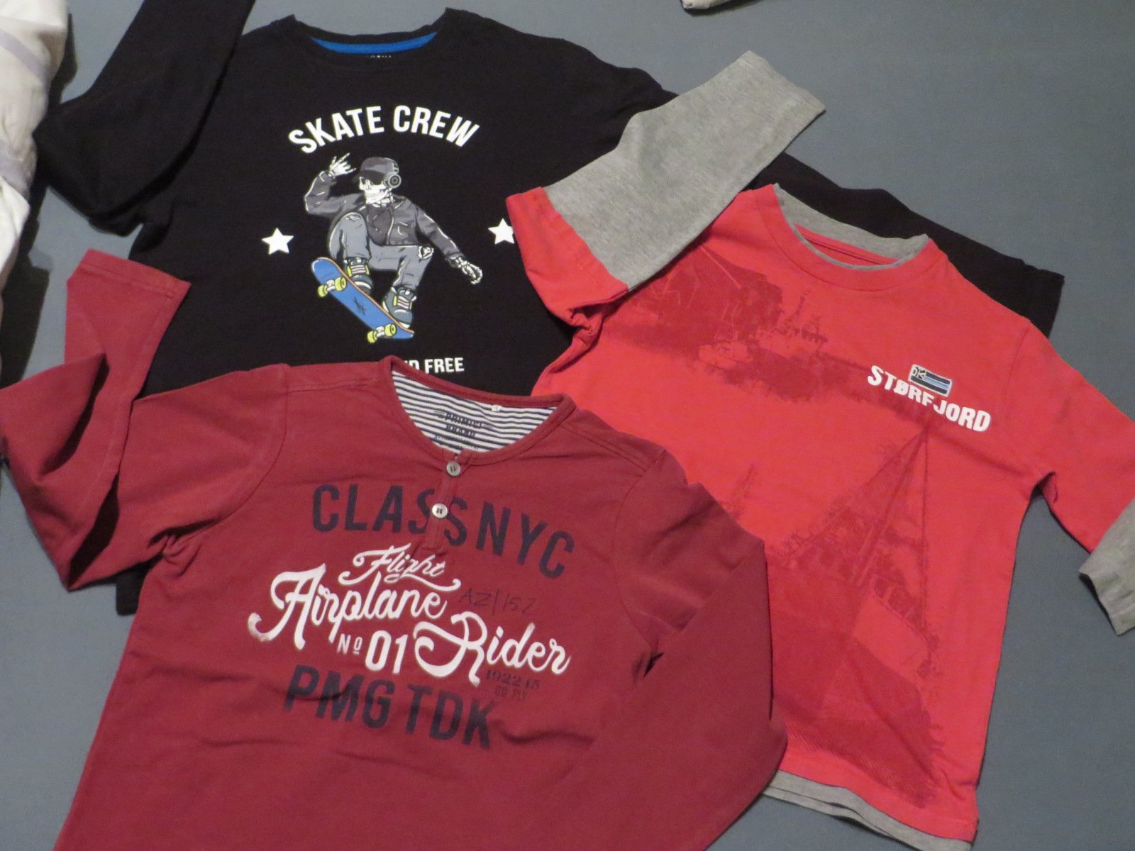 3/ červené tričko s rukávami s dvojitým efektom a potlačou veľkých námorných lodí, veľ. je 140-146. U syna obľúbené - cena 2,50€.