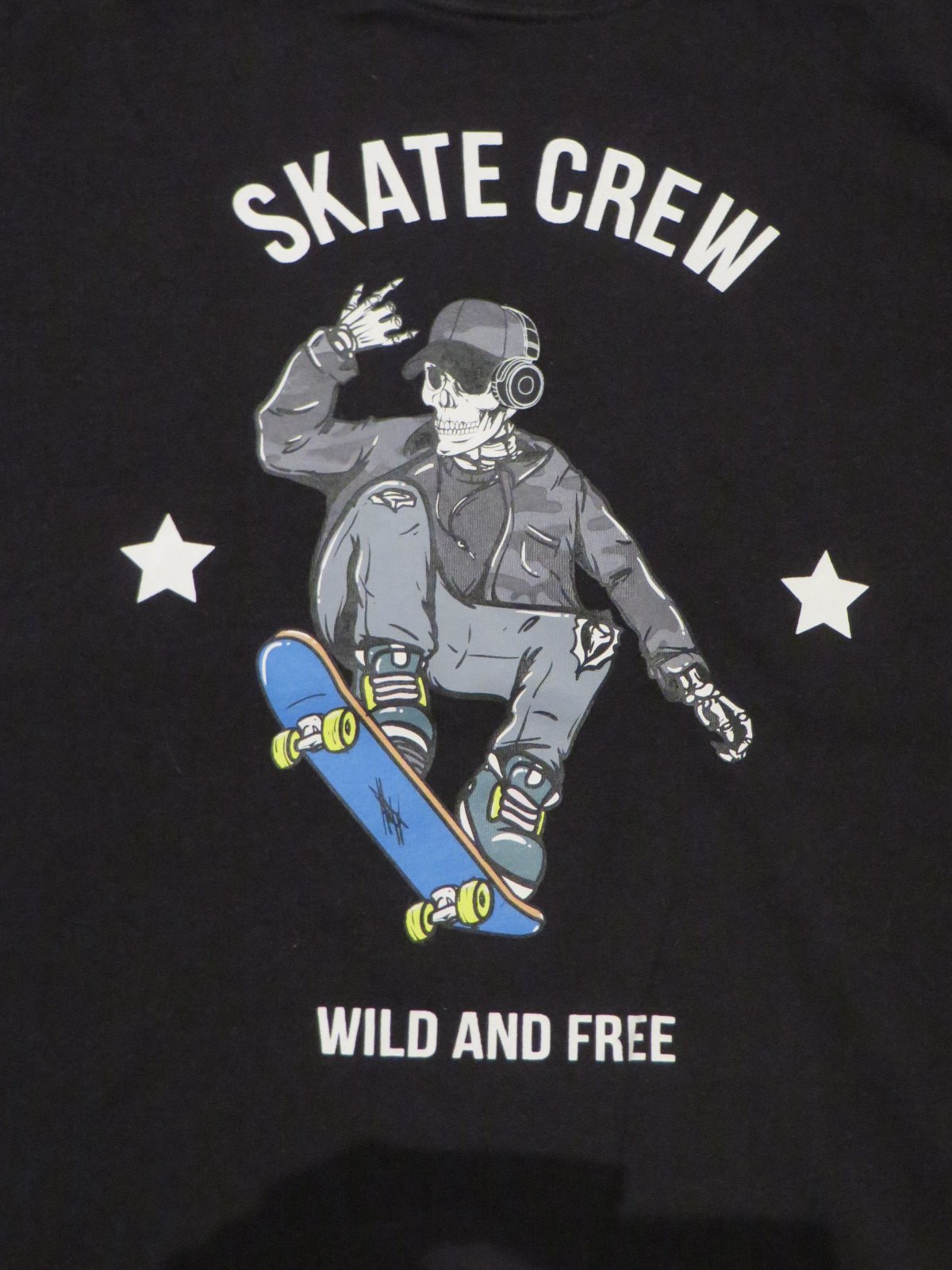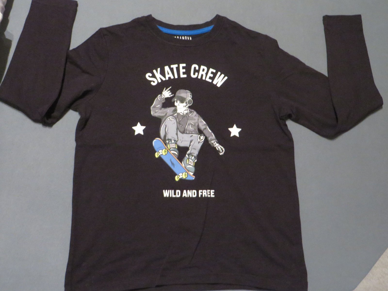 1/ čierne tričko s motívom skateboardingu - veľ. 140-146, značka Terranova, aplikácia je v 100%, tričko ako nové - cena 3,0€
