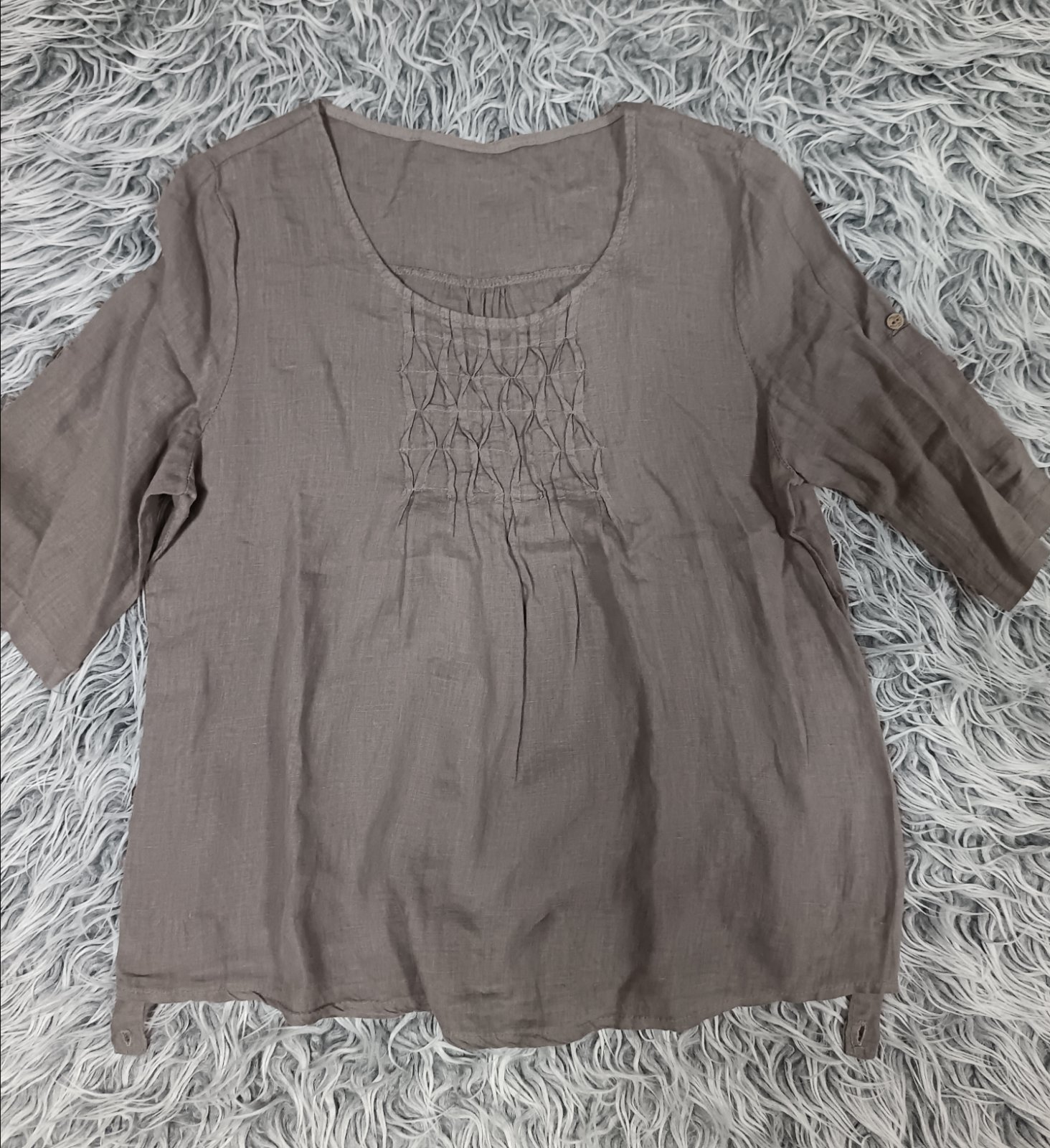 Predám blúzku s krátkym rukávom v dobrom stave. Na štítku píše veľkosť 22, podľa tabuliek by to malo sedieť na veľkosť XL. Pod prsiami je stiahnutá a pás je voľný, čiže vhodná aj pre tehuľku. Cena ...