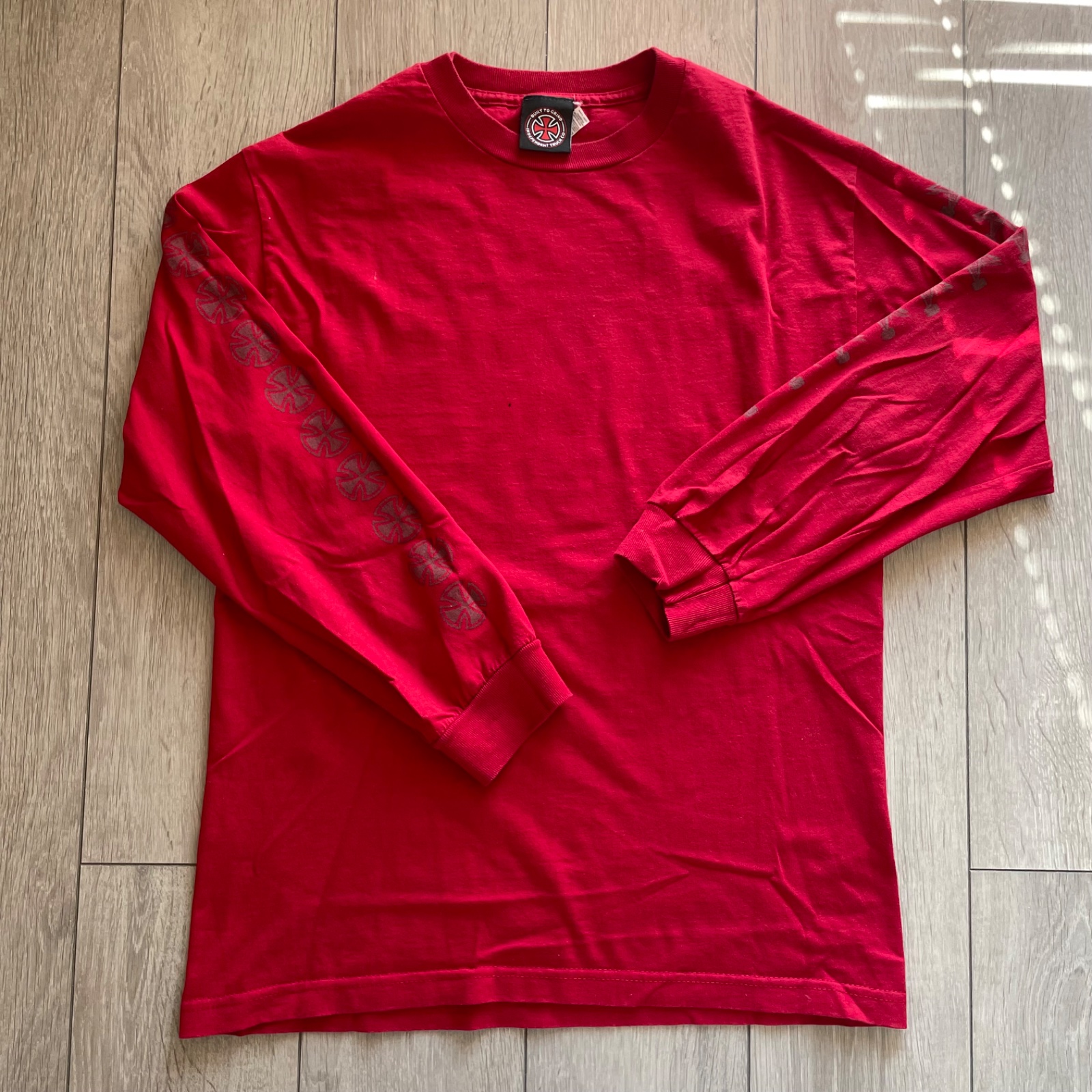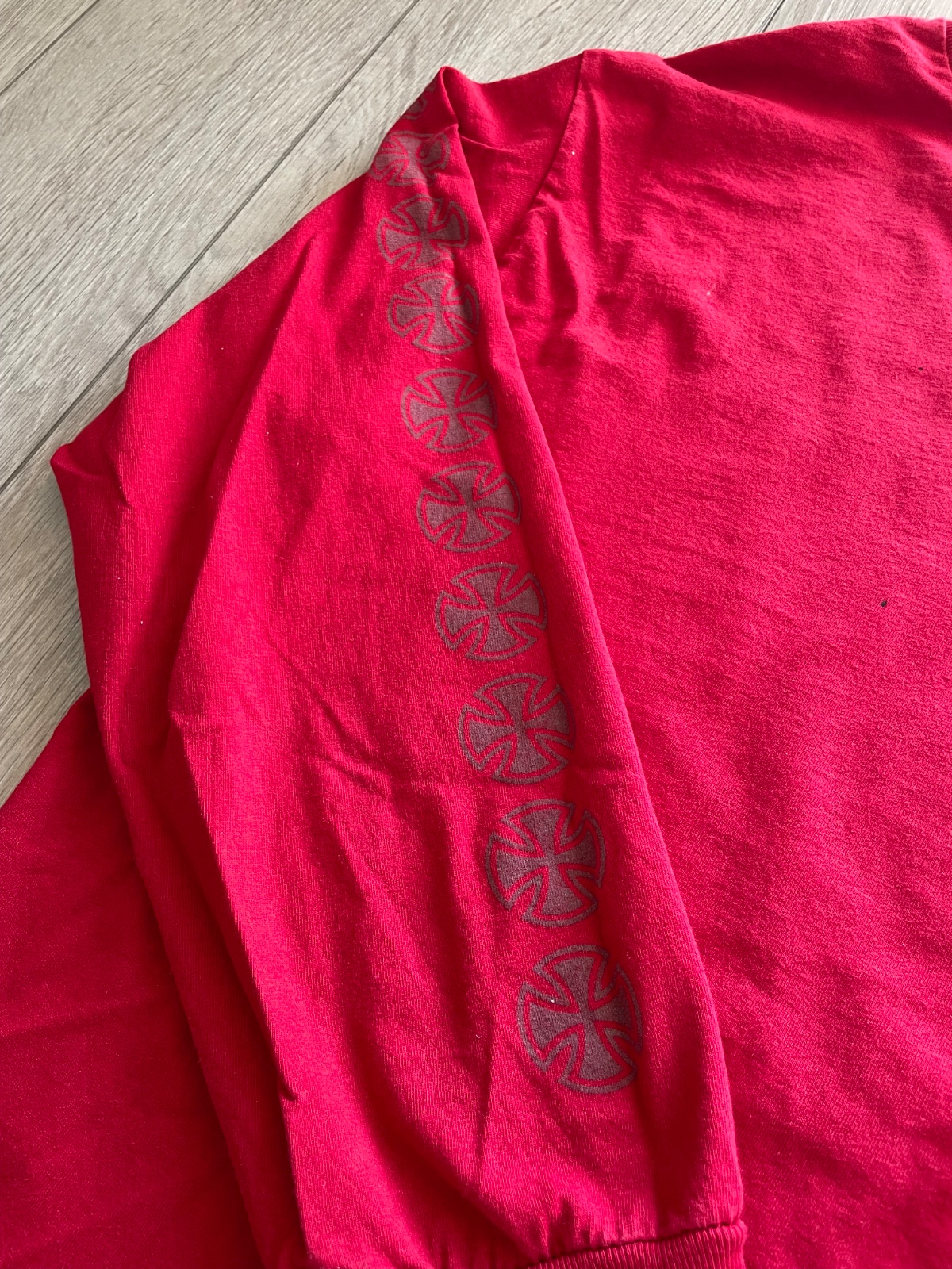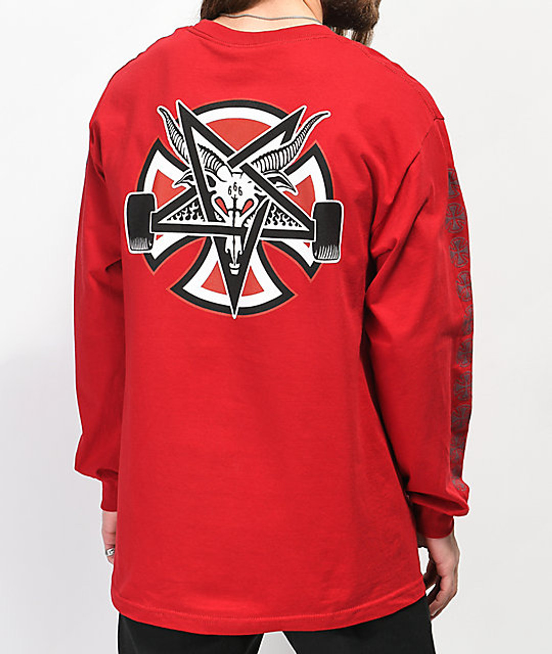 Červené tričko s dlhým rukávom v spolupráci Thrasher x Independent.