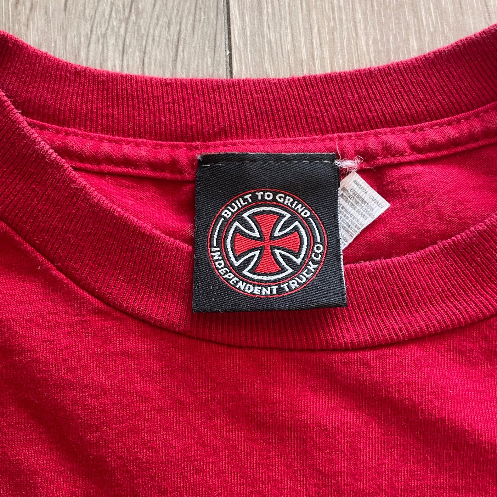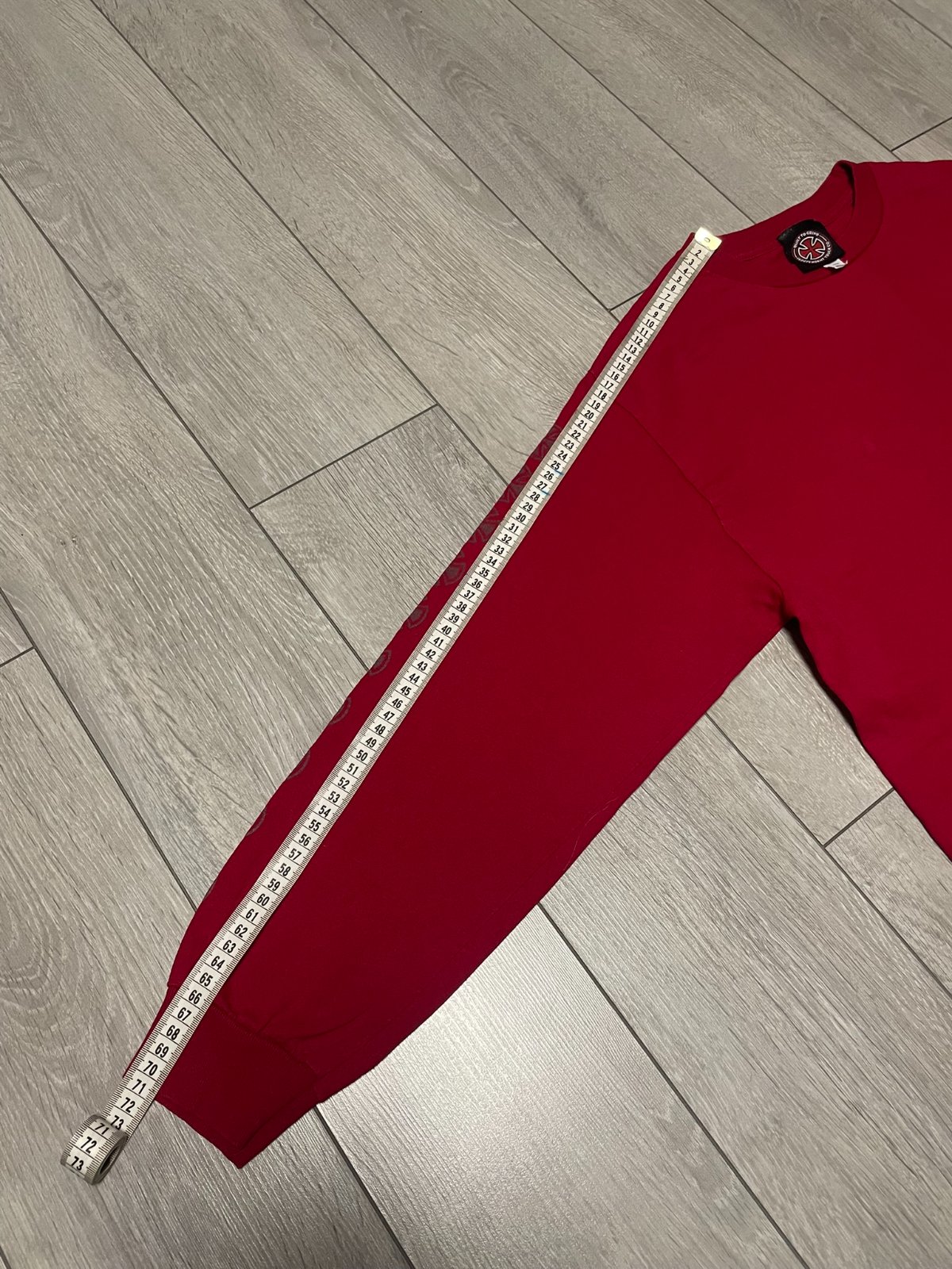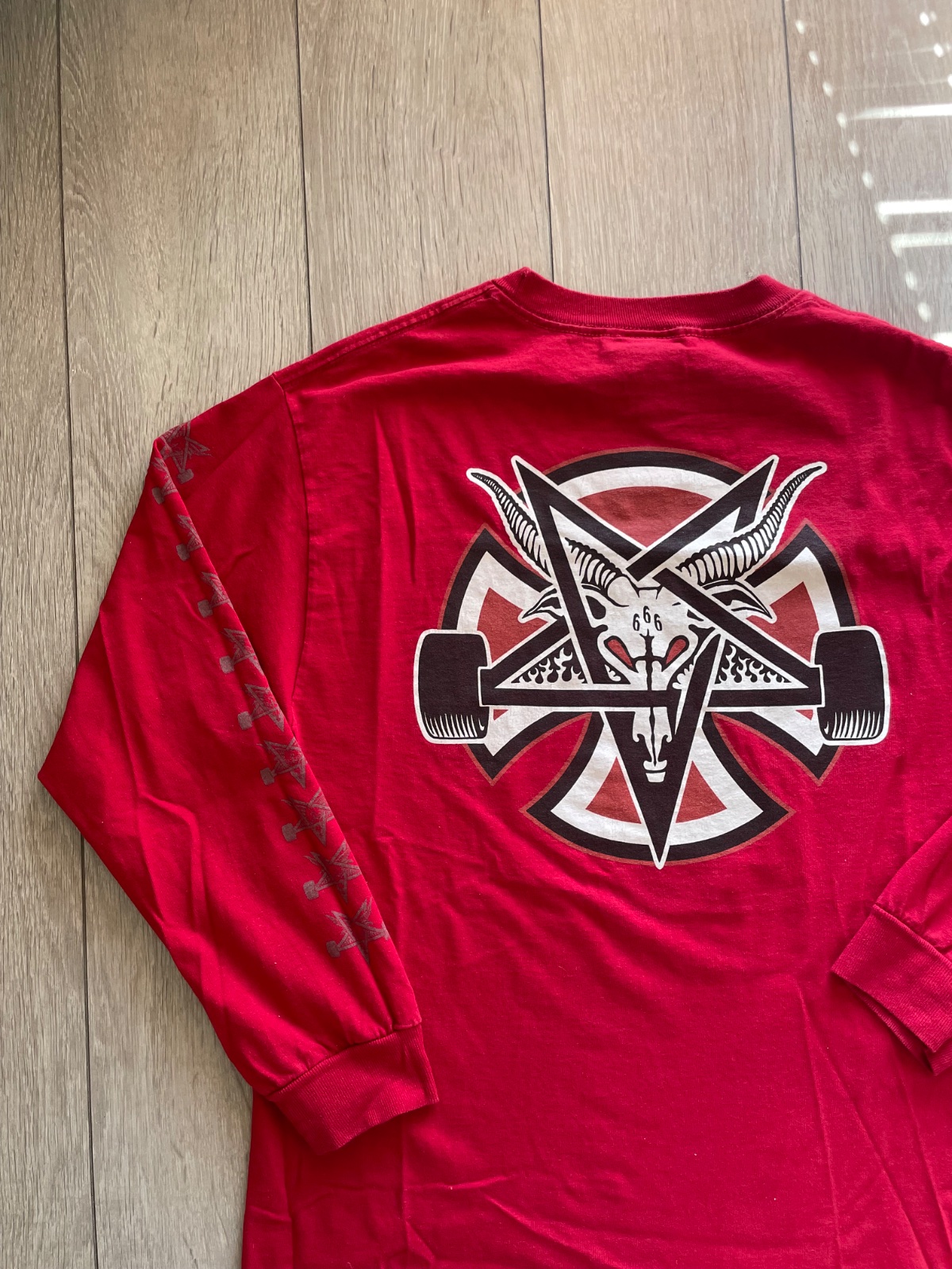 Červené tričko s dlhým rukávom v spolupráci Thrasher x Independent.