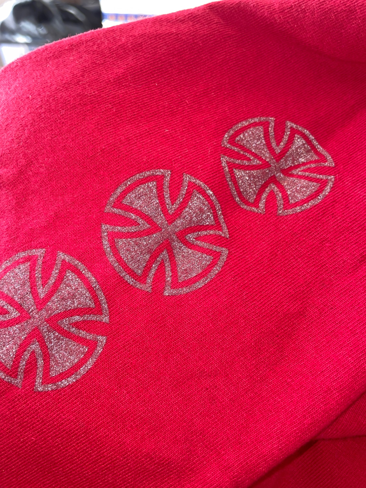 Potlač na rukávoch svieti.