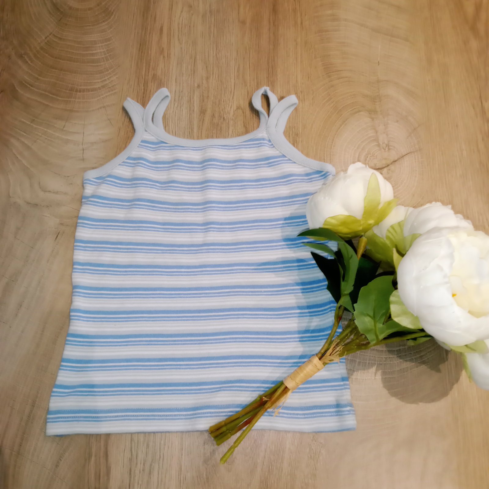 Nosené letné tielko, bez poškodení, bavlnené. Na foto vyzerá šedé, ale v skutočnosti je modré.