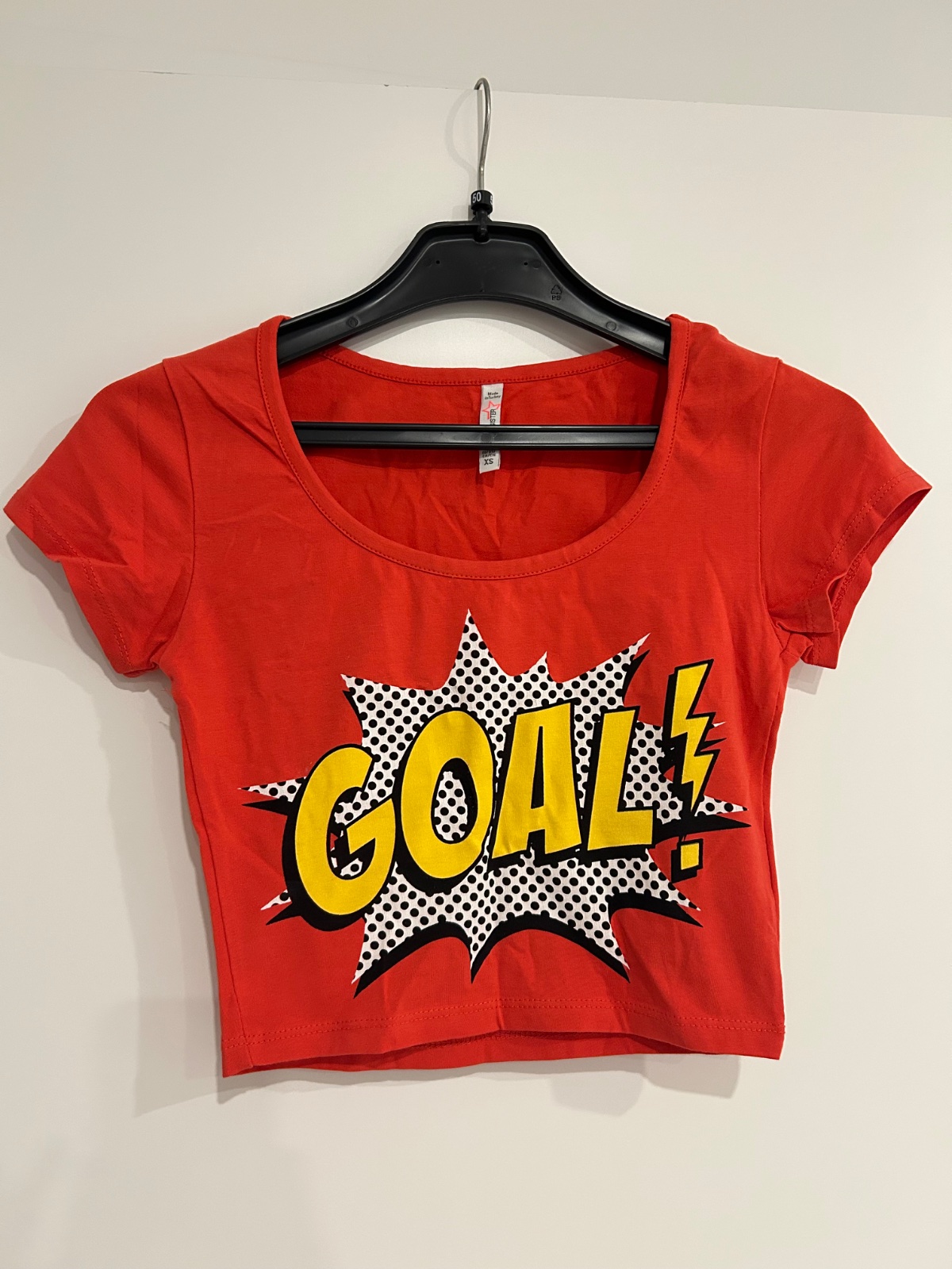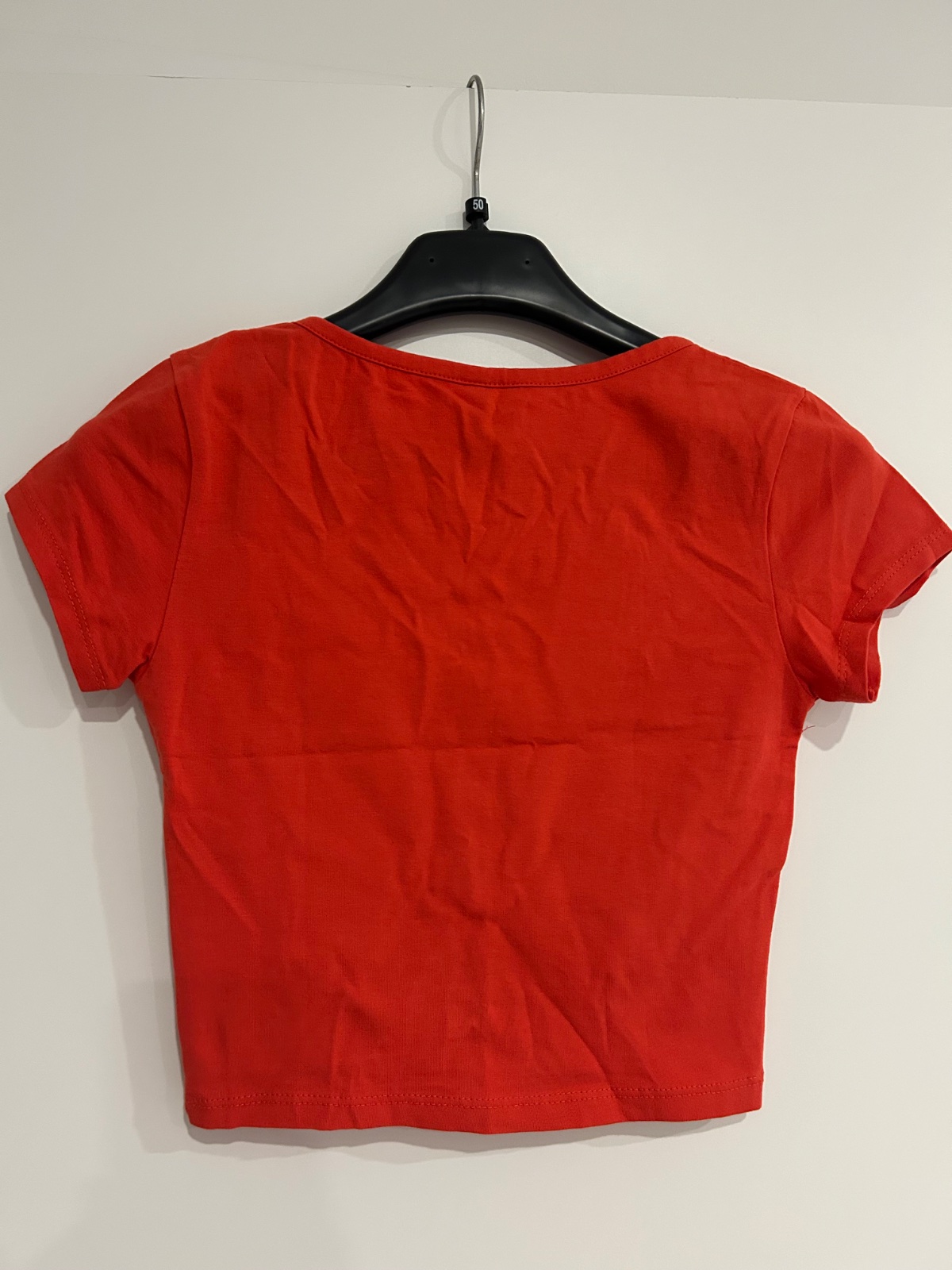 Predám červený crop top s potlačou. Bol nosený minimálne. Je vo veľmi dobrom stave.