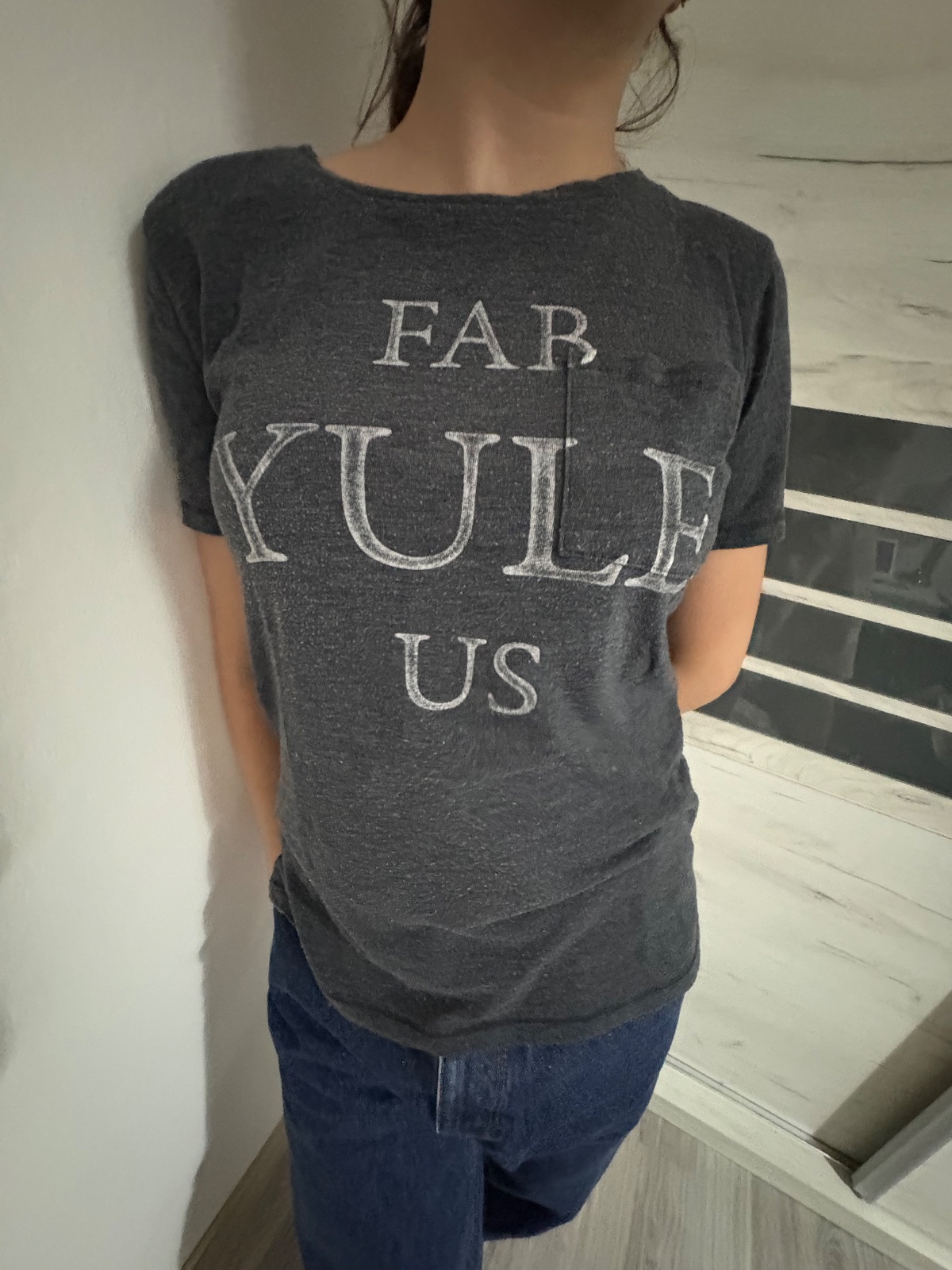 Nosené tričko, veľkosť písaná detské L( sadne na XS/S), elastické, dĺžka od ramien dolu 55cm, pod pazuchami 38cm