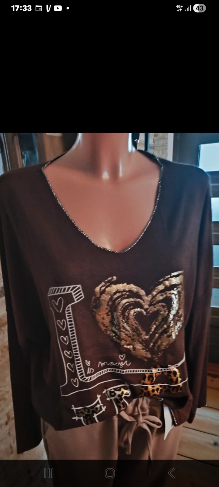 Krásny elegantný top pre dámy Príjemný, pohodlný, netlačí voľný strih, ktorý zakrýva všetky nedostatky. Príjemný model. Veľkosť : 42, 44, 46, 48, 50 Poľská značka, vyrobené v Poľsku. Farba ako na f...