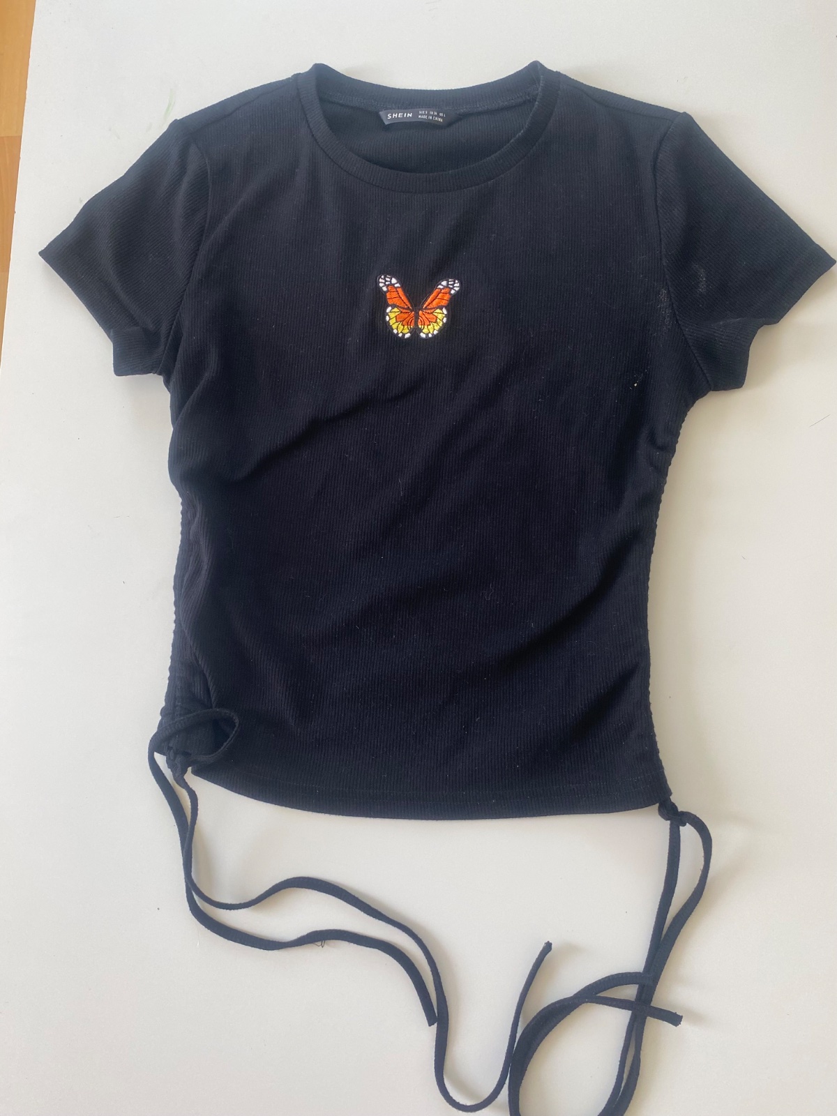 Cierne dievcenske - damske tricko znacky SANTPRIT v style ED HARDY Povodna PC 13,90 !!! Material bavlna a elastan sytej ciernej farby. Tricko s krasnou potlacou zeny ako motyla a malych motylikov v...