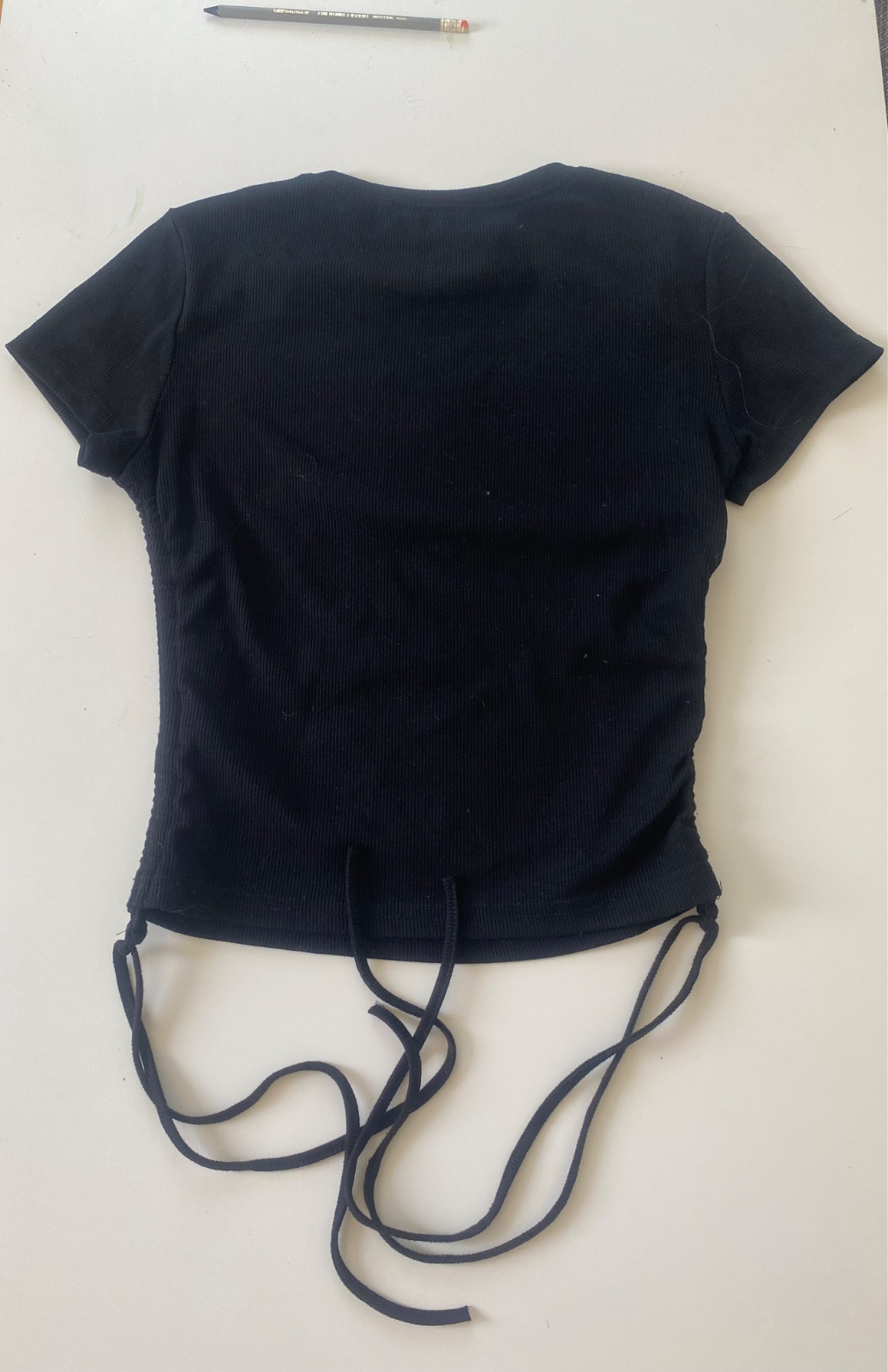 Nadherne cierne body - top s kratkym rukavikom s vyraznou aplikaciou ceresniciek ,spodna cast s nasitym cvockovym zapinanim.Material elasticky polyester. Dokladam real foto!!! Velkost M,sedi na S...