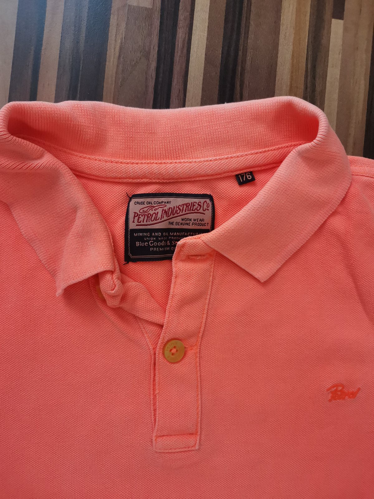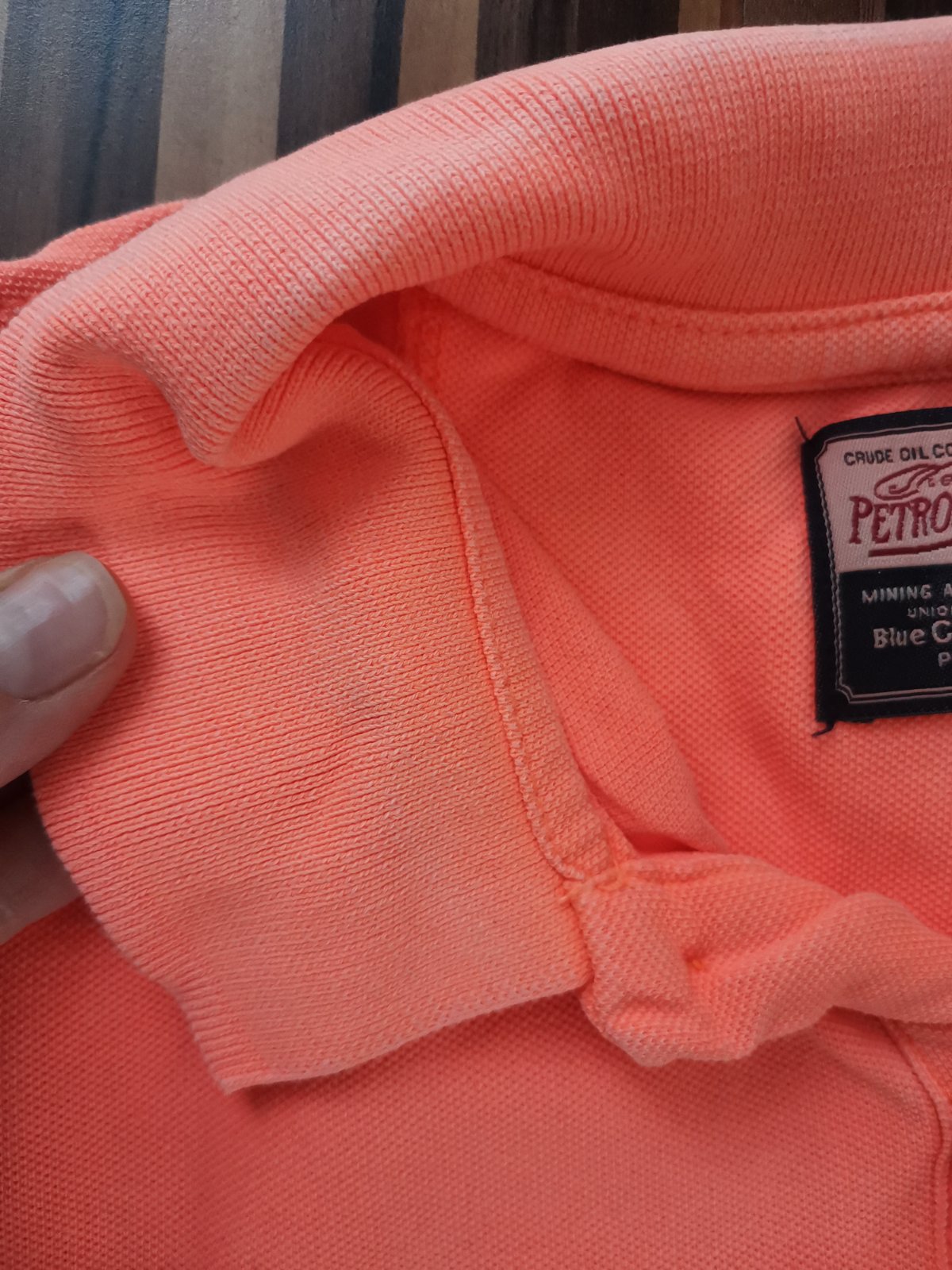 Krásne neónové. Pásik svetlejší ako je ohnutý golier, pri nosení nevidieť, jedine keď sa vyrovná golier