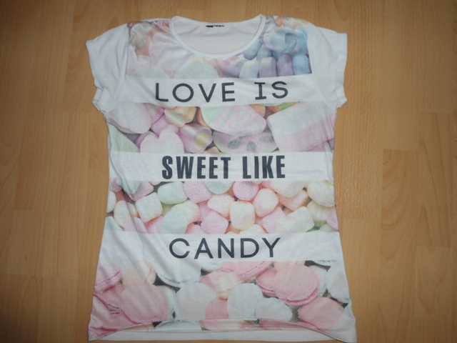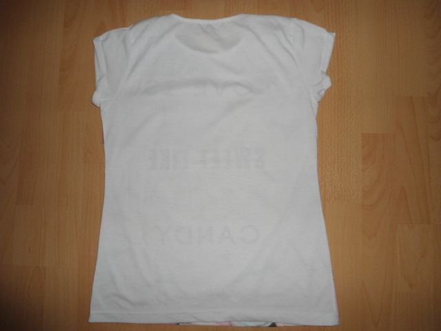 238k. dievcenske tricko cukrik, velk. 146, bavlna, na doma posluzi ma uz zmolky, bez dierok, dlzka 58cm, rukav 8cm, cez prsia 41x2cm, cez brucho 40x2cm
