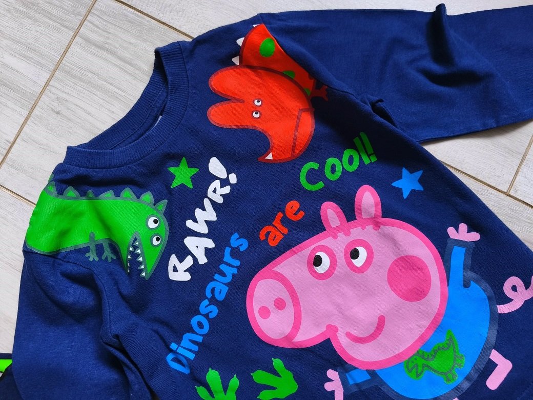 Ponúkam tieto tričká s potlačou Pepa Pig a Toy Story, základná farba tmavomodrá, v perfektnom stave, veľkosť 98/104.