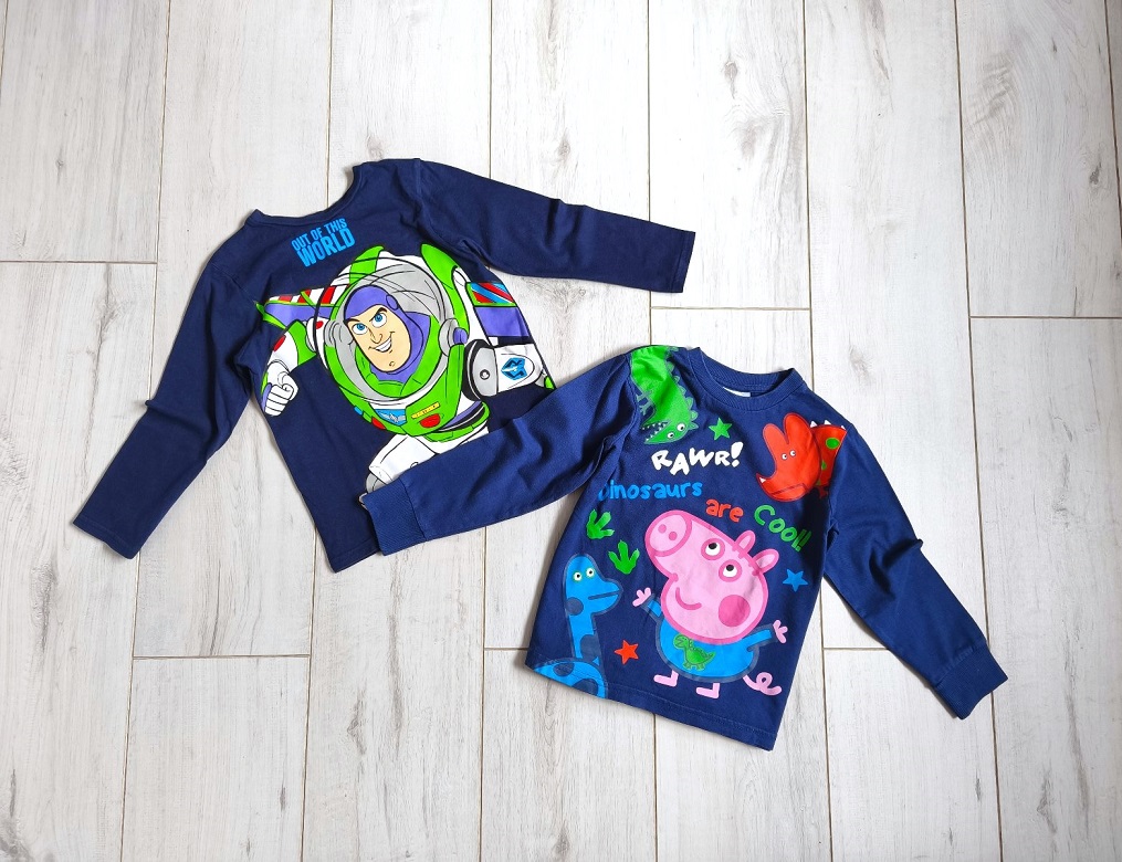 Dĺžka tričiek 39cm Pepa Pig, 41cm Toy Story.