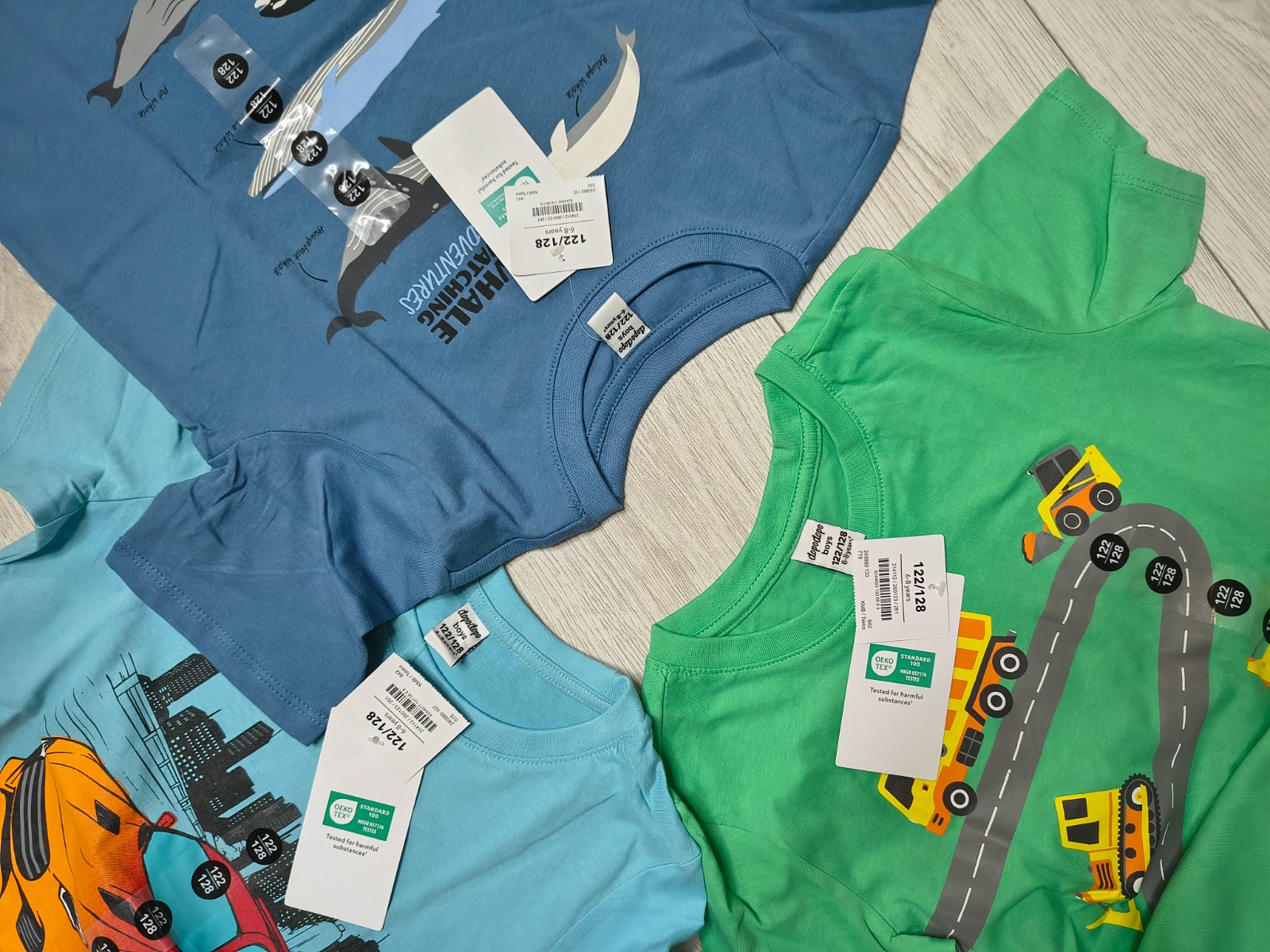 Predám tričko s krátkym rukávom nové nenosené /nestihli sme vynosiť/ kupované v Tako. Veslkosť 122. Cena 6 euro aj s poštou.