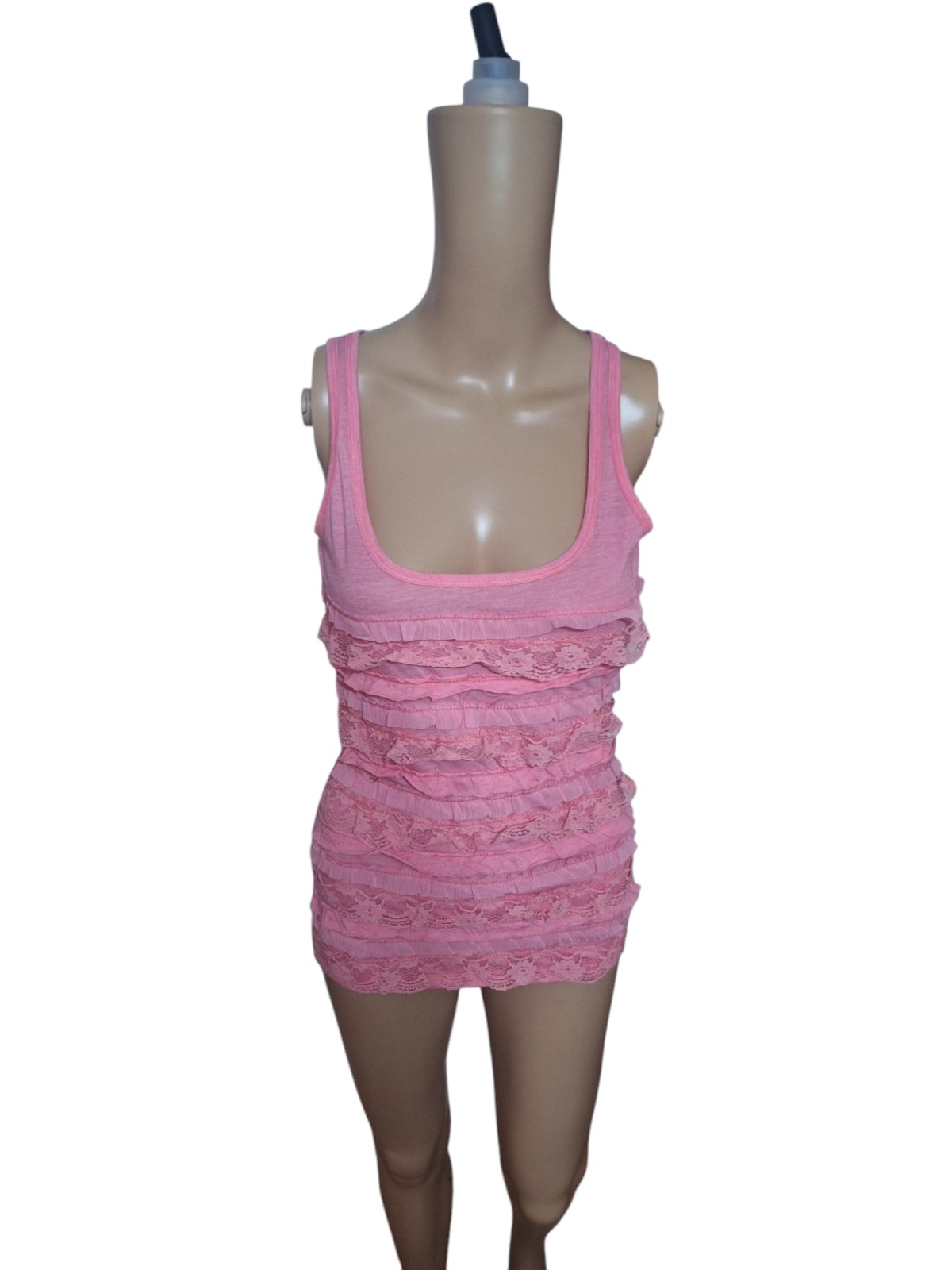 Dámske značkové tričko s čipkou. Dĺžka je 65cm,obvod hrudníka je 72cm a obvod pása je 66cm. kód 1286