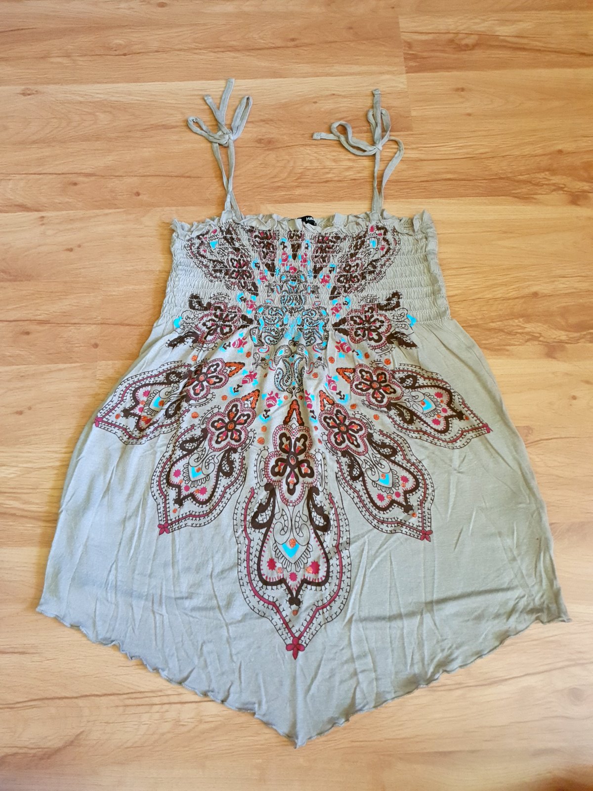 Dámske vzorované tielko / crop top veľkosti M. Materiál je písaný 85% polyester a 35% viskóza. Stsvom je ako nové absolútne bez poškodenia. Rozmery: Dĺžka 50cm Šírka prsia 47cm (obvod 94cm) Šírka ...