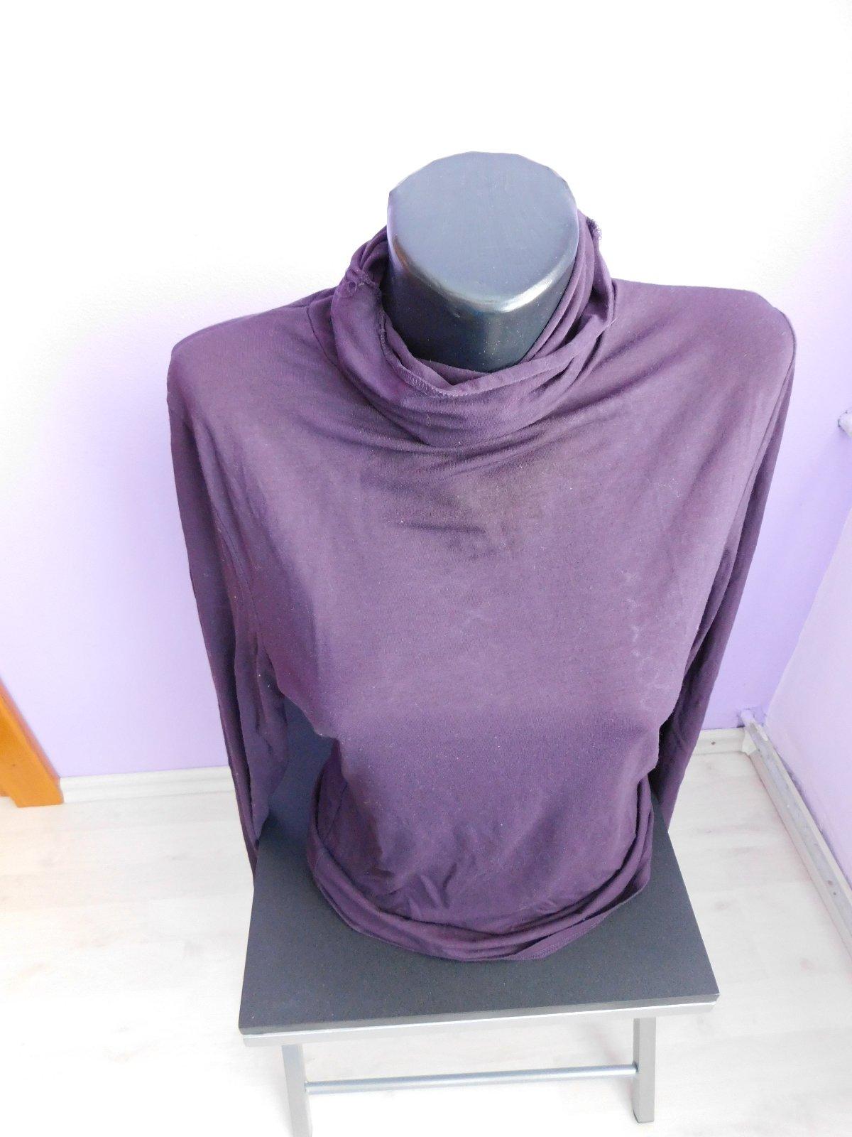 Fialové farebné dlhsie tielko. Spodna cierna cast je vpredu nariasena, ziadne poskodenia ani flaky, raz oprate, nenosene, material padavy jemny elasticky, dlzka 75 cm.