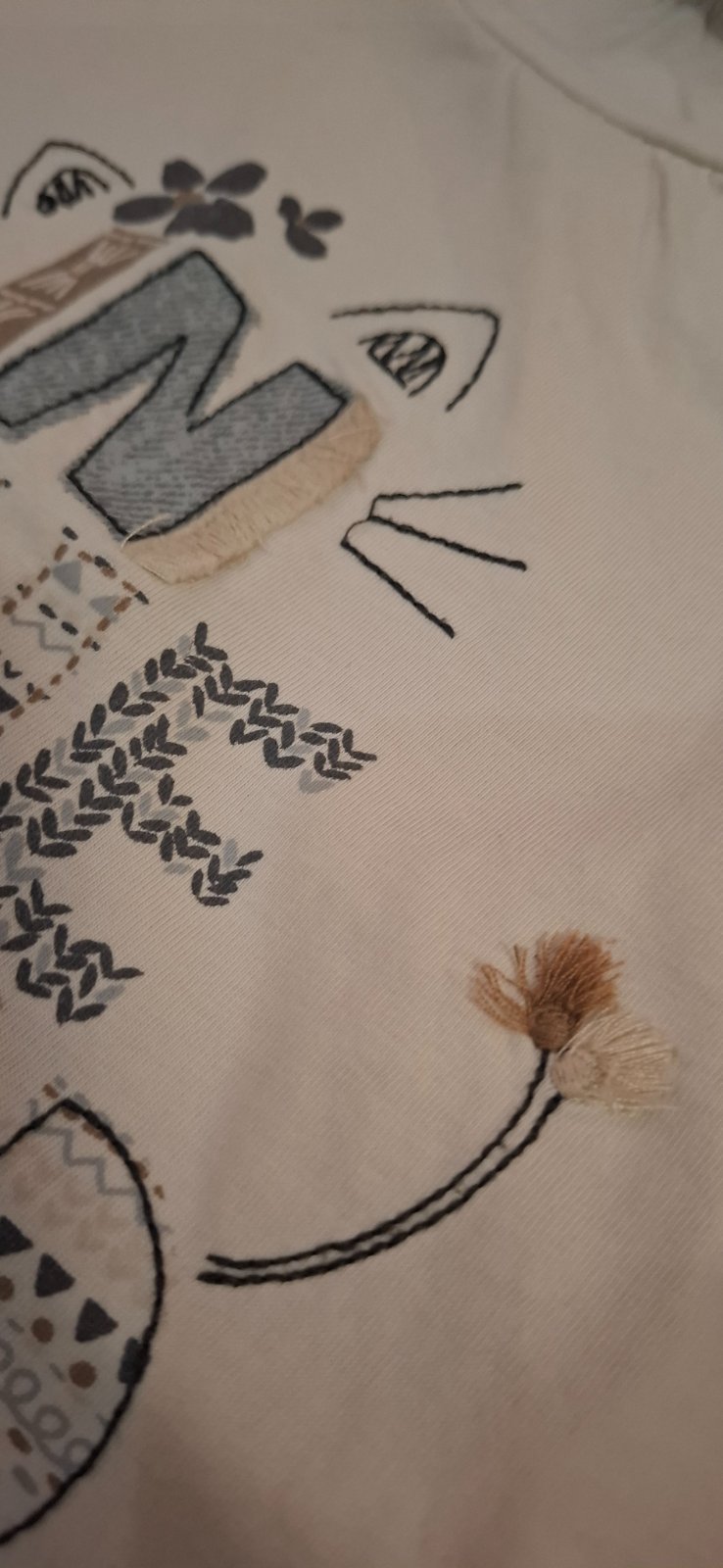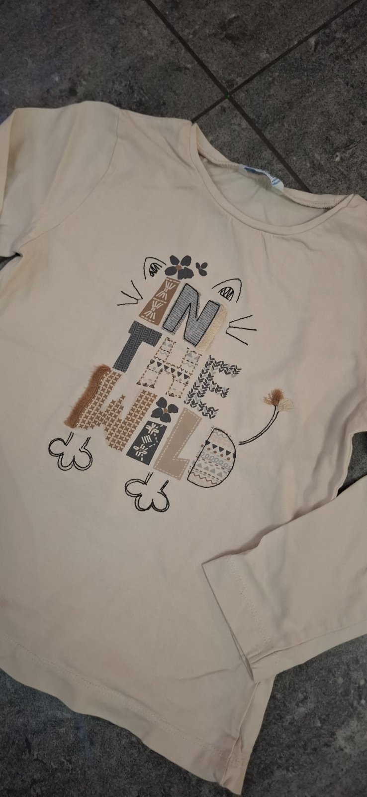Tričko Mayoral béžové, po jednom dieťati ,bez poškodený akurát ho dcéra zašpinila od fixky vid foto sú to malé fliačky nič veľké a nešlo to vyprať ,inak bez poškodený ,cena prispôsobená