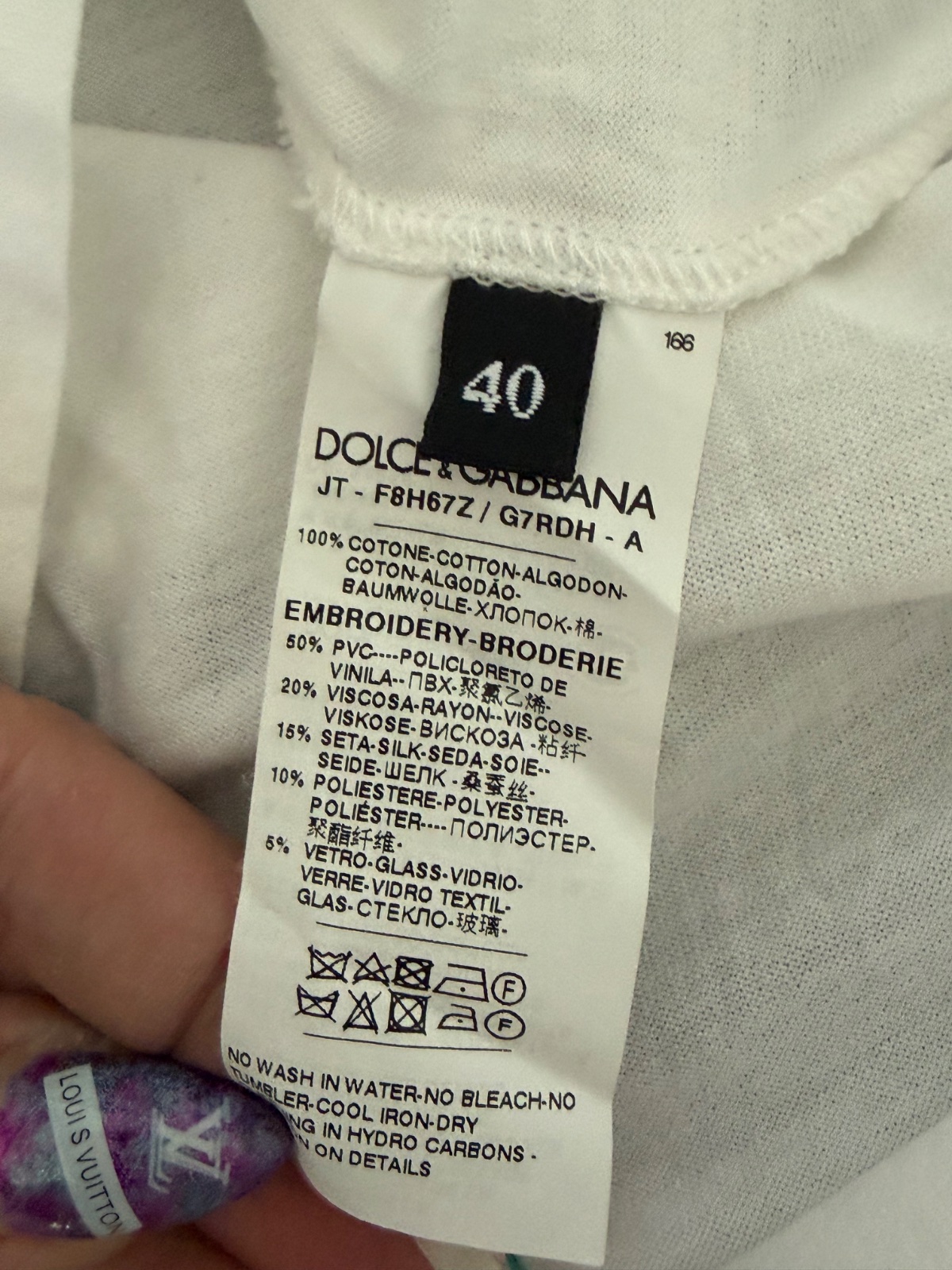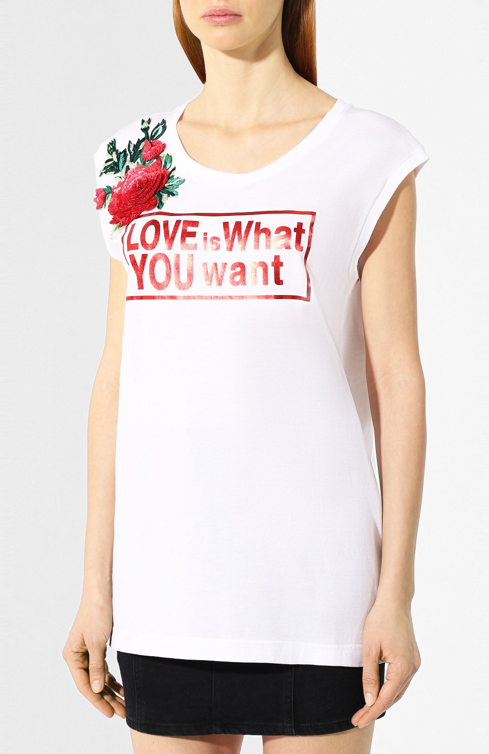 Nádherné biele tielko značky Dolce & Gabbana s kvetinovou aplikáciou a nápisom „LOVE is What YOU want“. Tričko je len skladované, nikdy nebolo nenosené. Mini vada sú mini dierky v tom lesklom nápise. Pri nosení nebadatelné, ale upozornujem na to. Velkost IT 40, ale je oversize, sedí M-L. Miery: šírka prsia 53 cm, dĺžka 68 cm.
