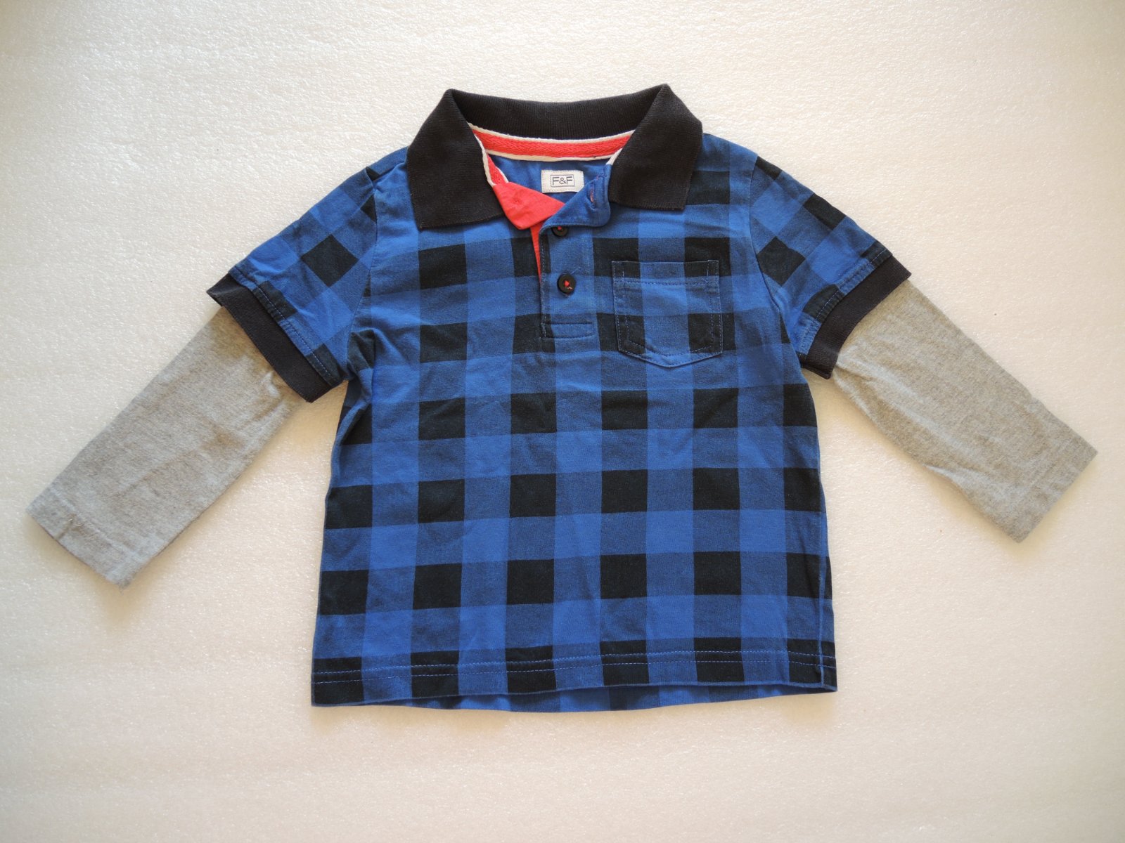 Predám krásne elegantné tričko ako košieľka. Bolo nosené, žiaľ vidno trolilinka chĺpoček pri naklonení na šedých rukávikoch, ale nie sú extra žmolkavé. Iba začínajúce a len pri naklonení. Na kockovanej časti nie je žmolkavá. Nemá žiadne iné poškodenia, ani fľaky. Je príjemná na nosenie. Mäkučká, hádam ešte niekomu urobí radosť. Gombičky sa dajú rozopnúť. Dĺžka od pliecka na spodok je 36 cm. ... Farba modrej je tmavo modrá v kombinácii s červenou a svetlošedou.