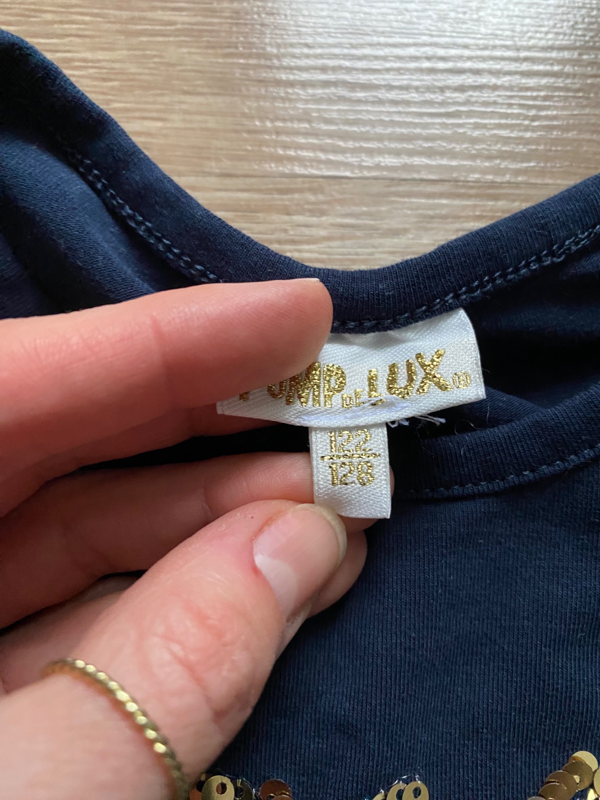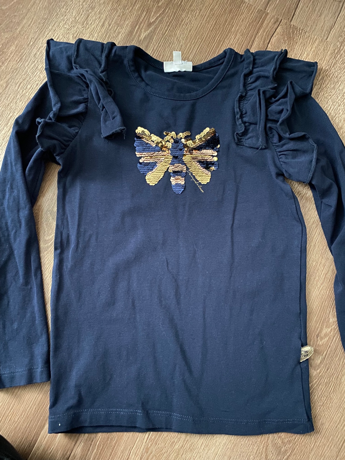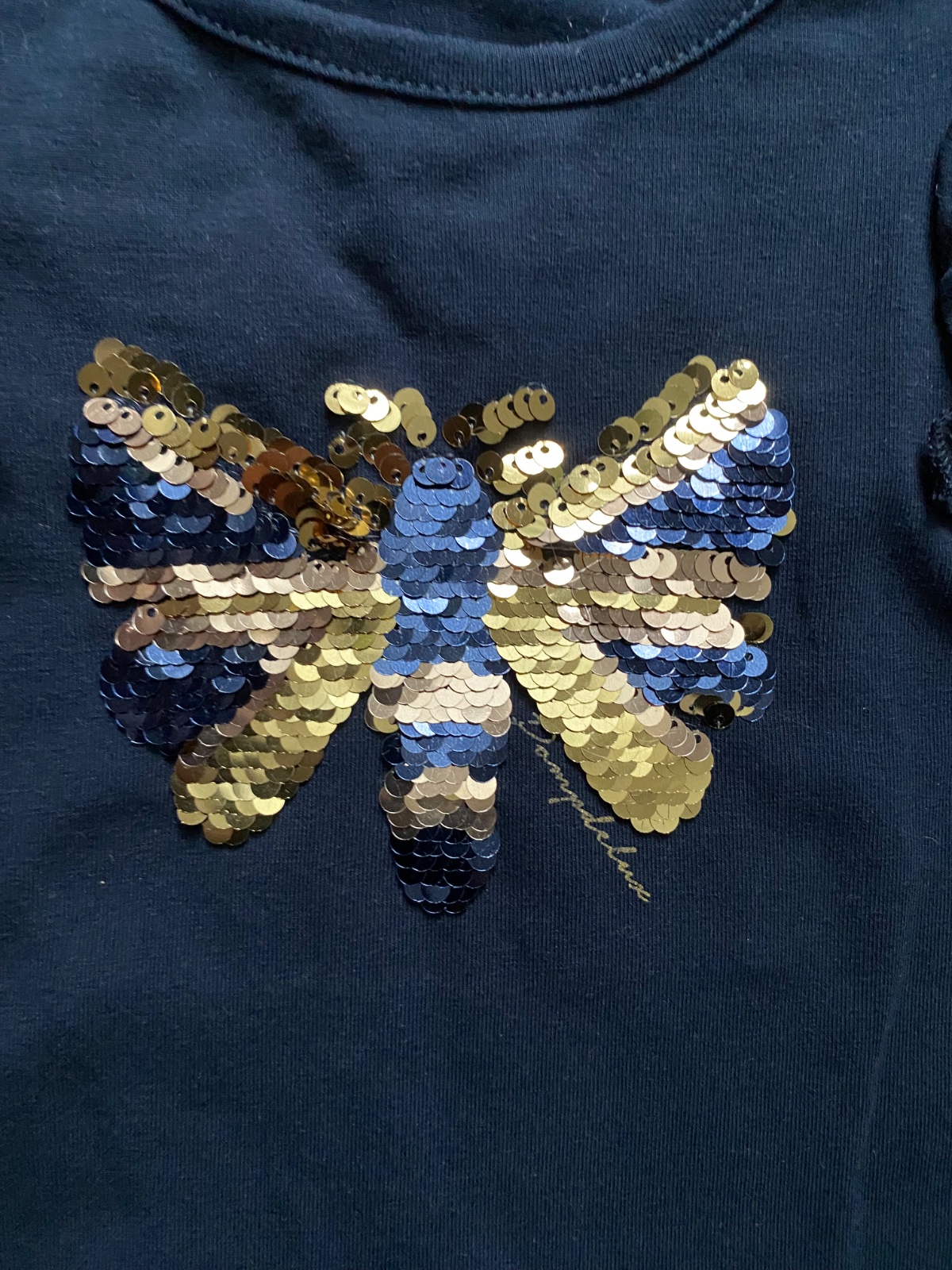Tmavomodré tričko s flitrovym motýľom