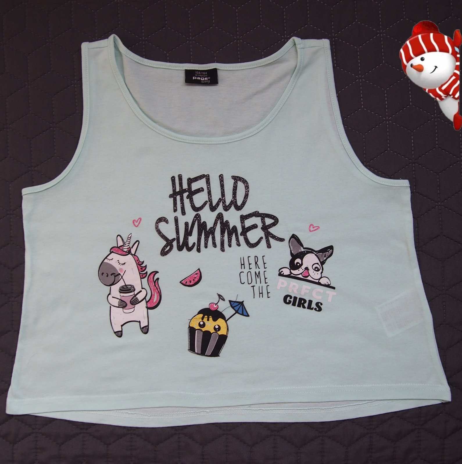 Predám dievčenský croptop, veľ. 158/164, tak na 12-14 rokov, zn. page one young, kupovaný v Takku. Croptop je v dobrom nosenom stave, žiadne vážnejšie poškodenia som nenašla. Niekomu ešte dobre po...