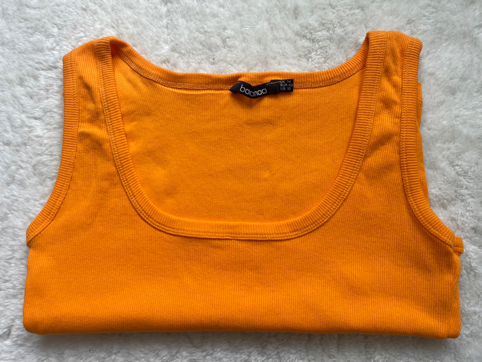 Oranzovy tielkovy crop top zn. Boohoo, bez poskodeni. Farba oranzovejsia ako na foto