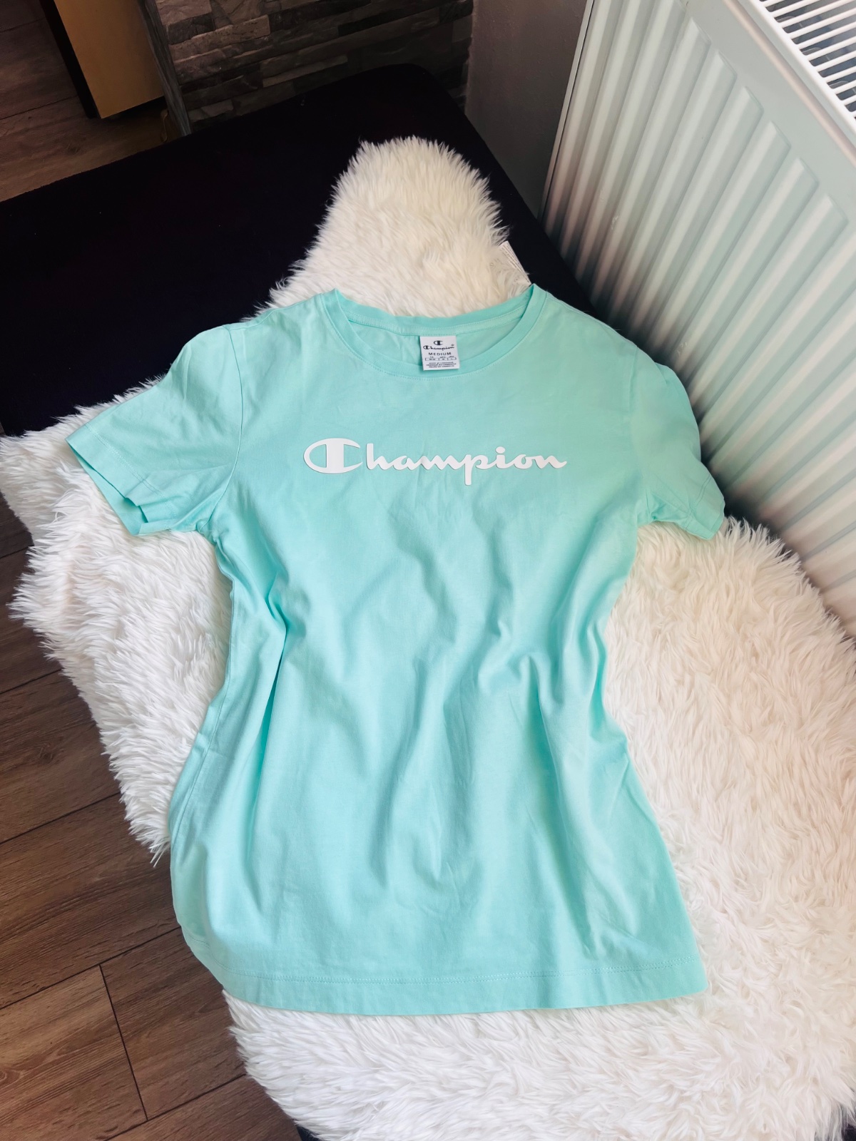 Nová krásna na rukáve logo značka Champion veľkosť M Dĺžka predok 63 zadok 65cm prsia 45x2