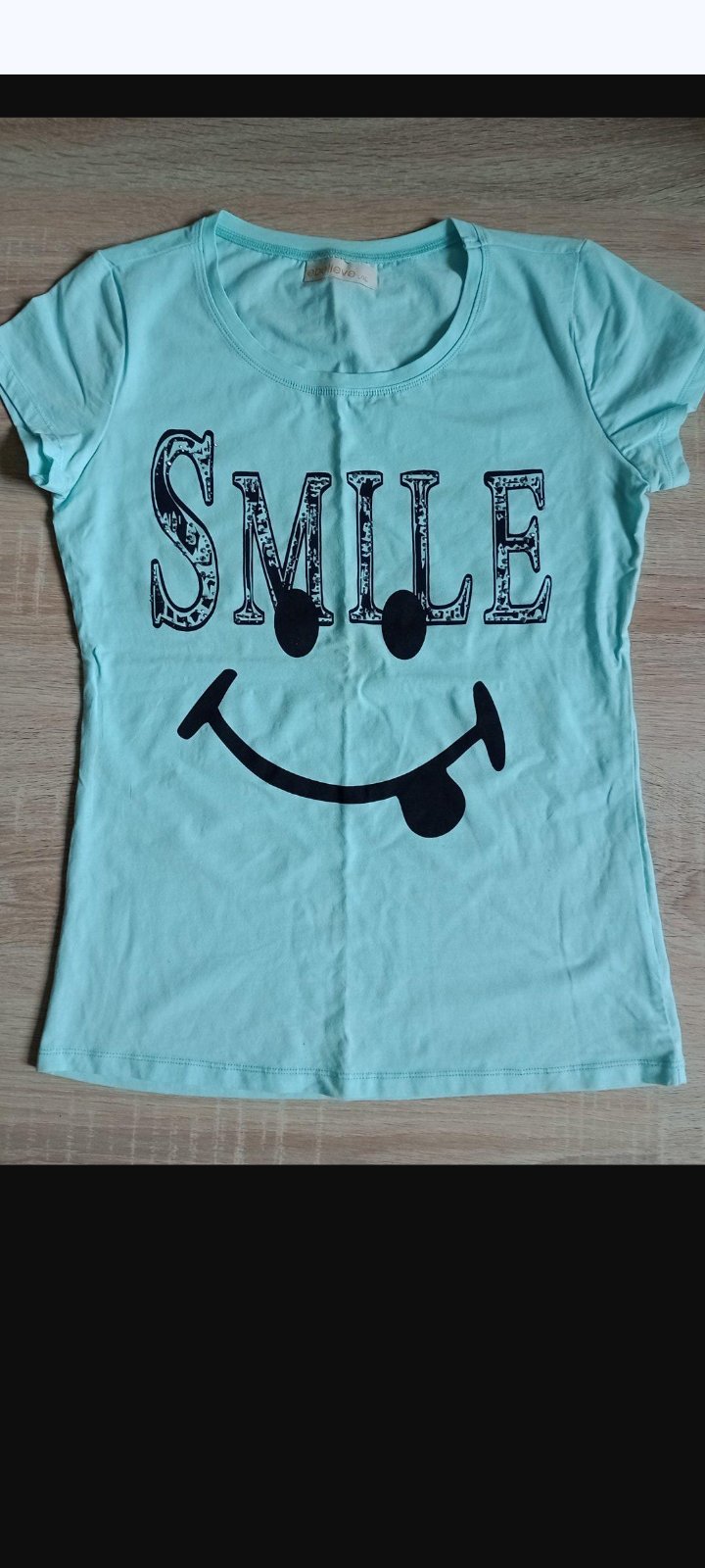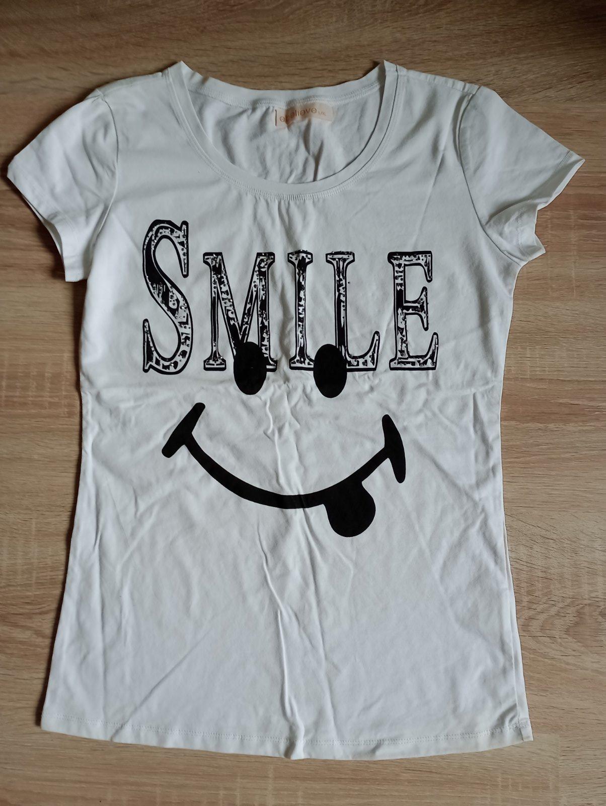 Tričko so smajlíkom biele a tyrkysové