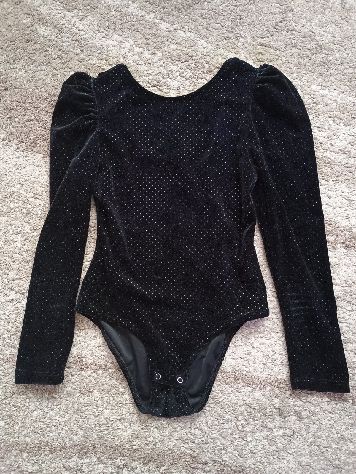 Elegantné body s trblietkami a hlbokým výstrihom na chrbte. Výrobca udáva veľkosť 152, my sme mali ako 140. V prípade záujmu premeriam.