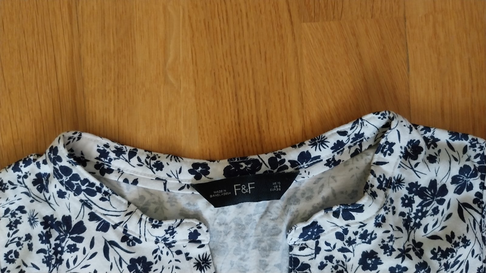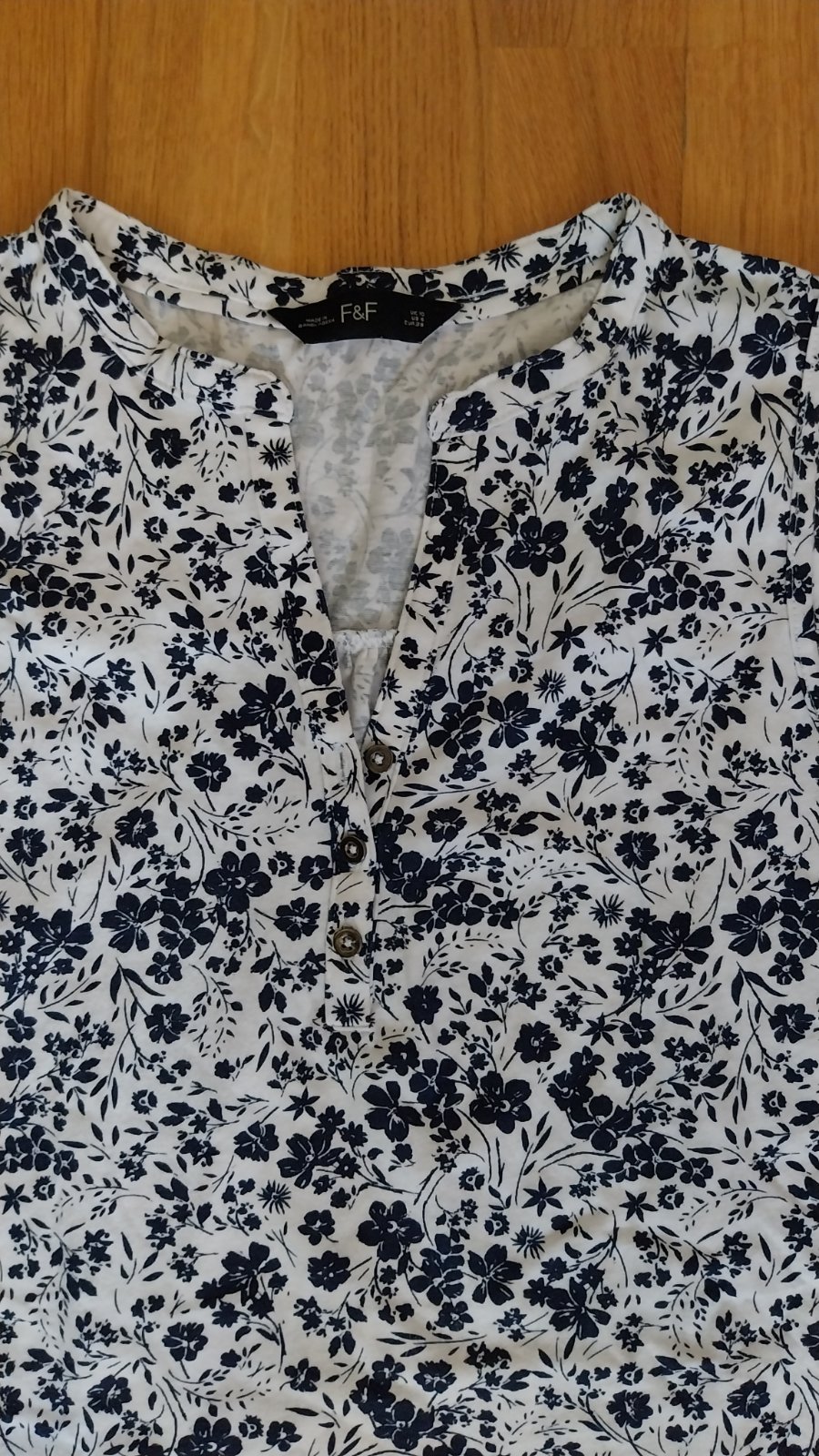 Biele tričko zn. F&F s modrou potlačou kvetov. Top stav, ako nové. (12/20)