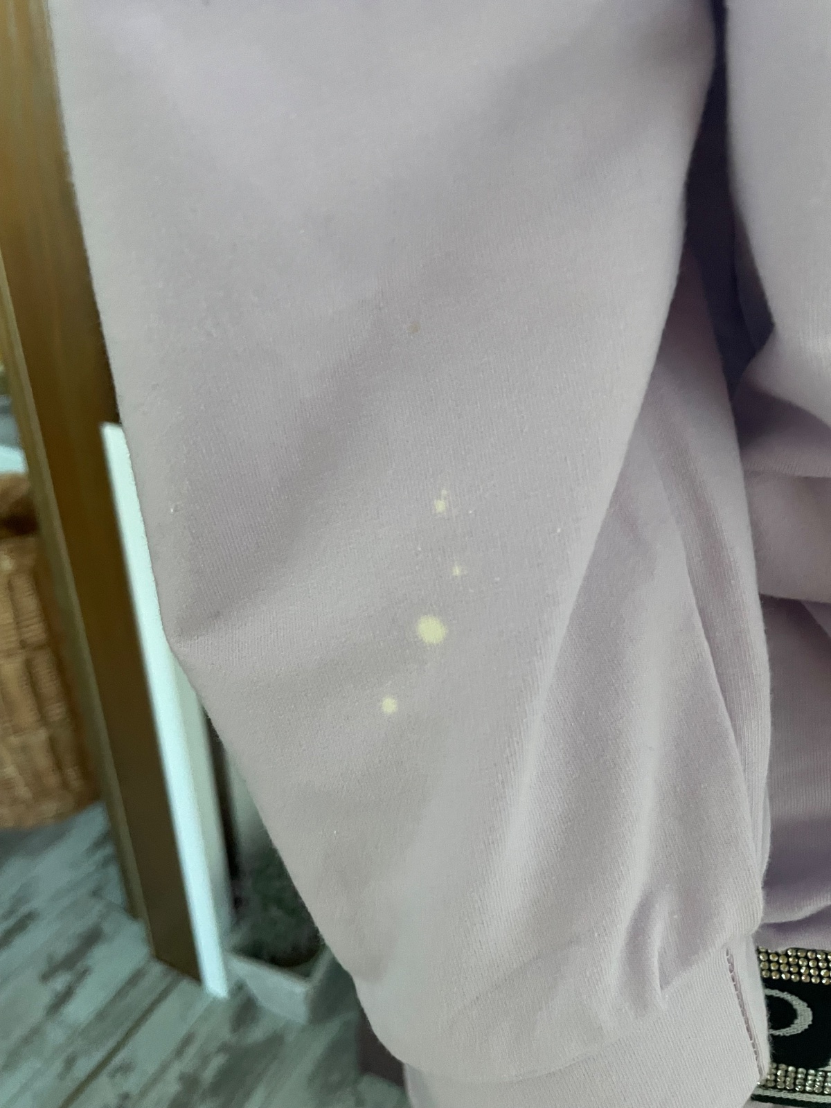 Na rukaviku 2 a vpredu 1 mini bodky biele