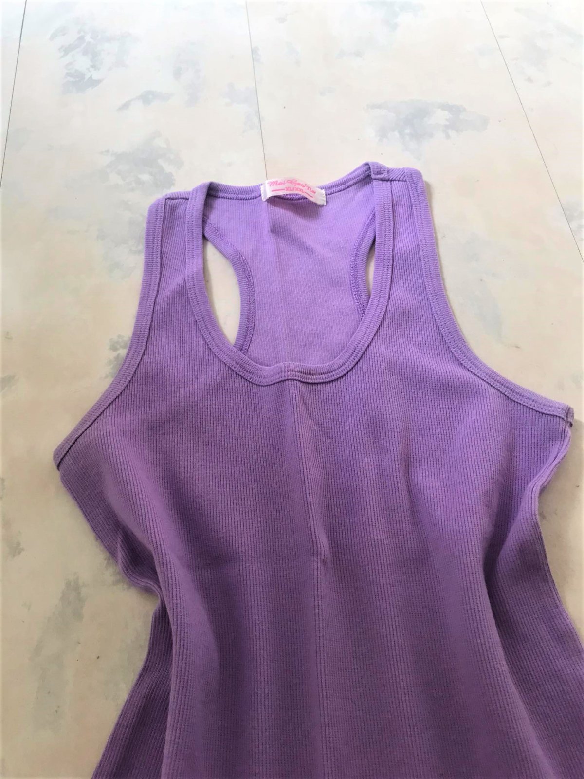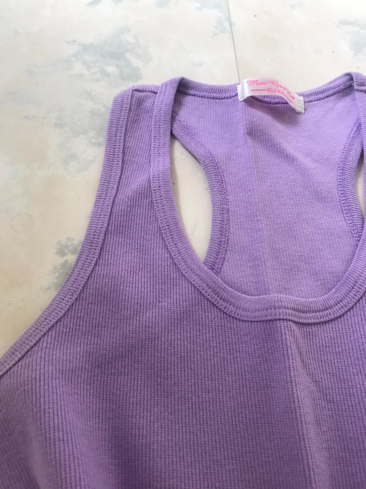 bavlnené vrúbkované letné tielko,krásna pastelová farba, je úplne ako nové,iba preprané po skladovanímšírka v kľude = 33 cm,poddá sa do 38 x 2 cm, dlžka 53 cm,na spodku po obvode sú uvolnené nitky,náročky som ich neodstrihla,ale obvod pekne drží - je duplovane podhnutý,ale upozorňujem a prikladám fotky