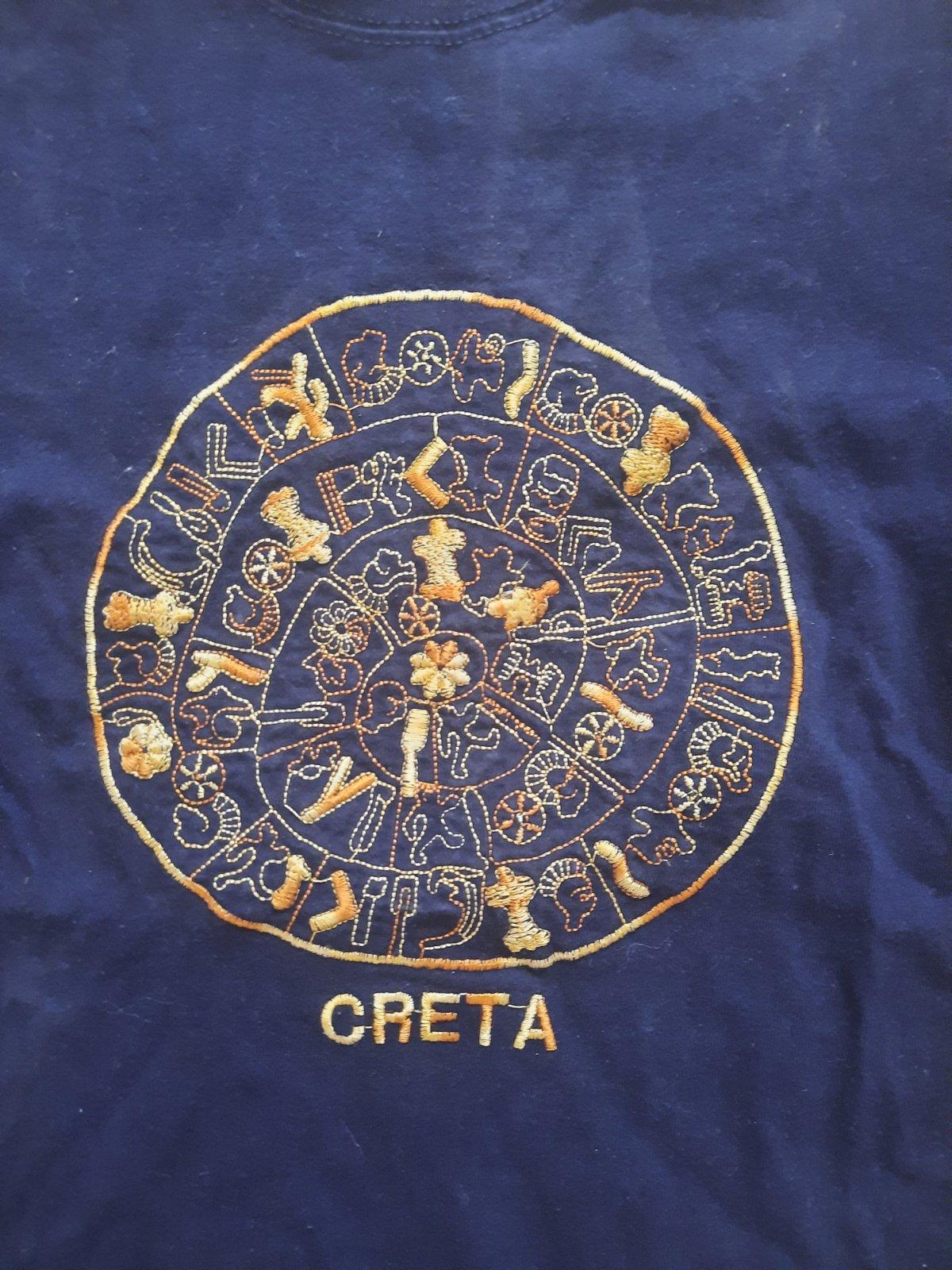 Pekné bavlnené tričko so zlatou výšivkou na prednej strane.