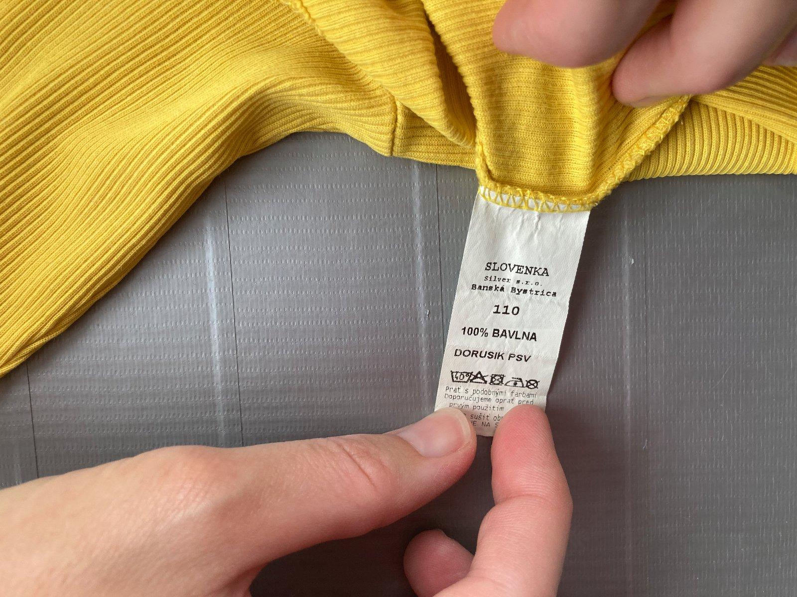 Zlte, vrubkovane tricko znacky Slovenka, velkost 110, bavlna.
