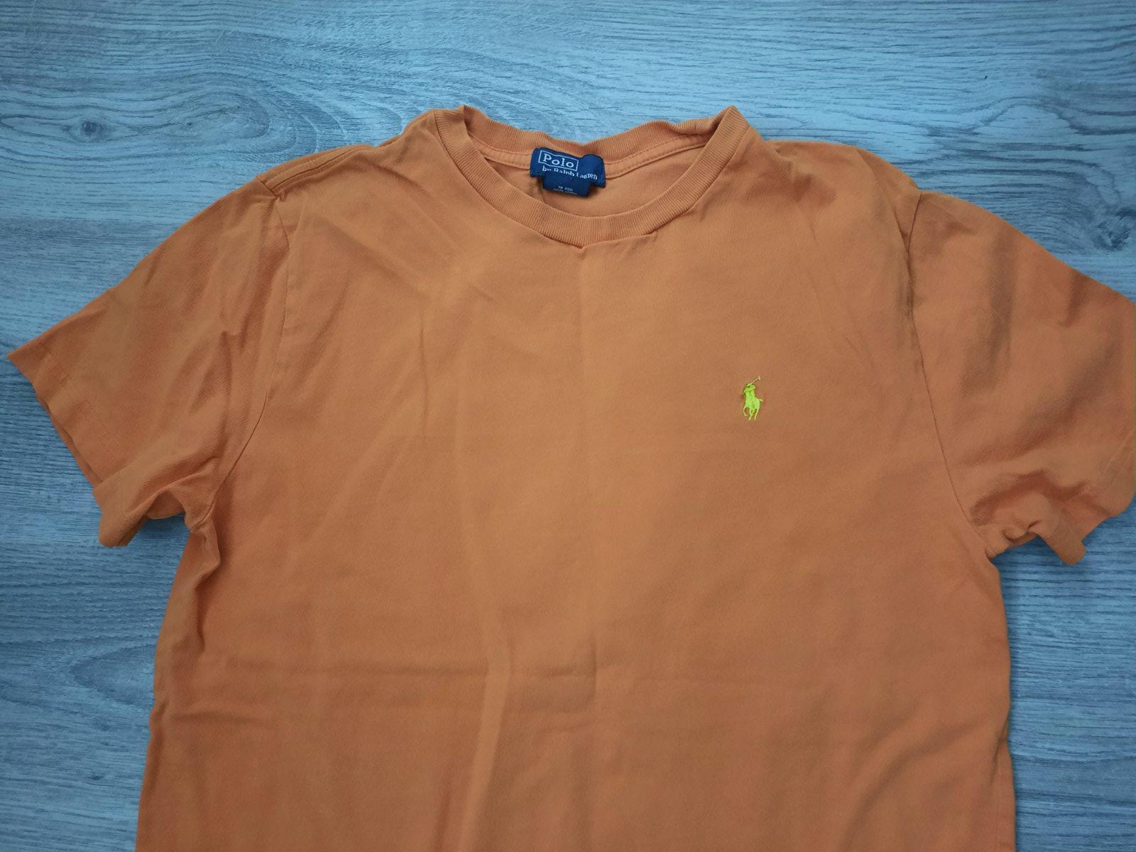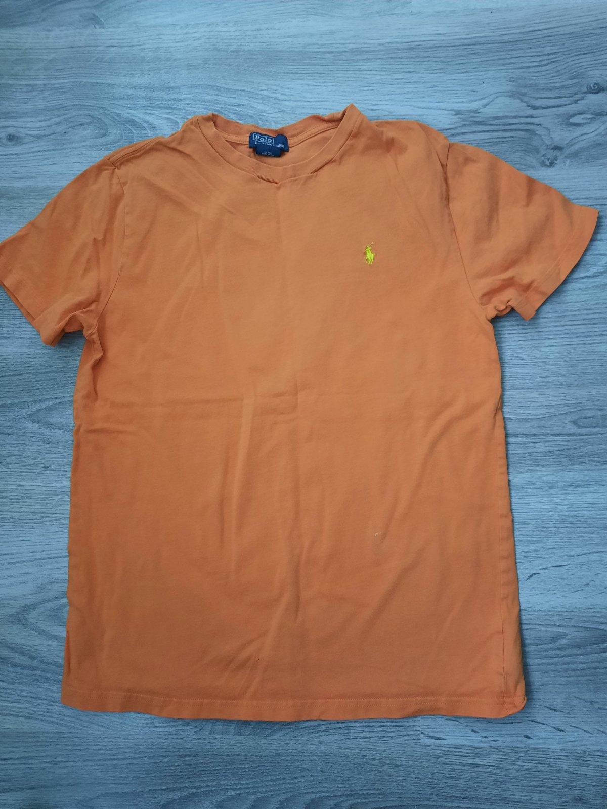 Tričko s dlhým rukávom oranžovej farby, veľkosť 164. Dĺžka chrbta - 51 cm, rukávov od pleca -55 cm, cez prsia - 90 cm.