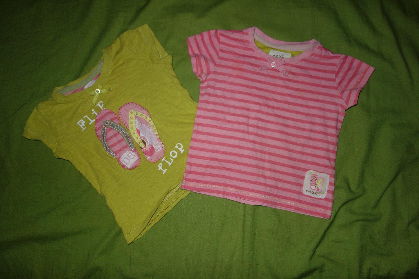 Rozmery: zlto-zelene tricko: dlzka od ramena: 33cm, sirka pod pazuskami: 25cm; ruzove tricko: dlzka od ramena: 31cm, sirka pod pazuskami: 28cm,