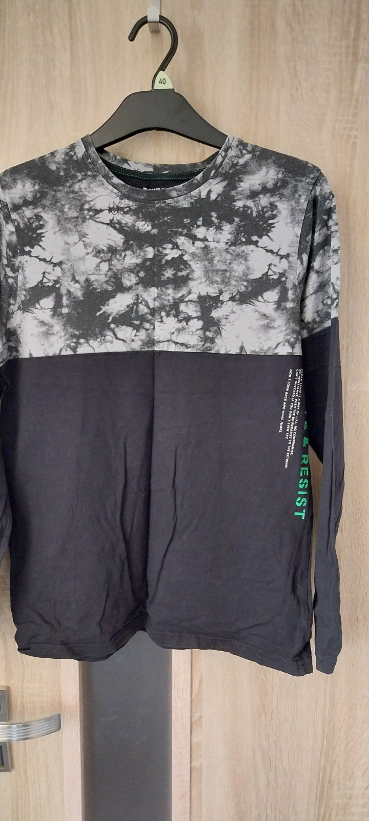 Ako nové. Dĺžka od krku dole 63cm , šírka pod pazuchami 42cm. Rukáv od krku 66cm. 100% bavlna, príjemná hladučká látka. Veľkosť je 158 ale píšu 164
