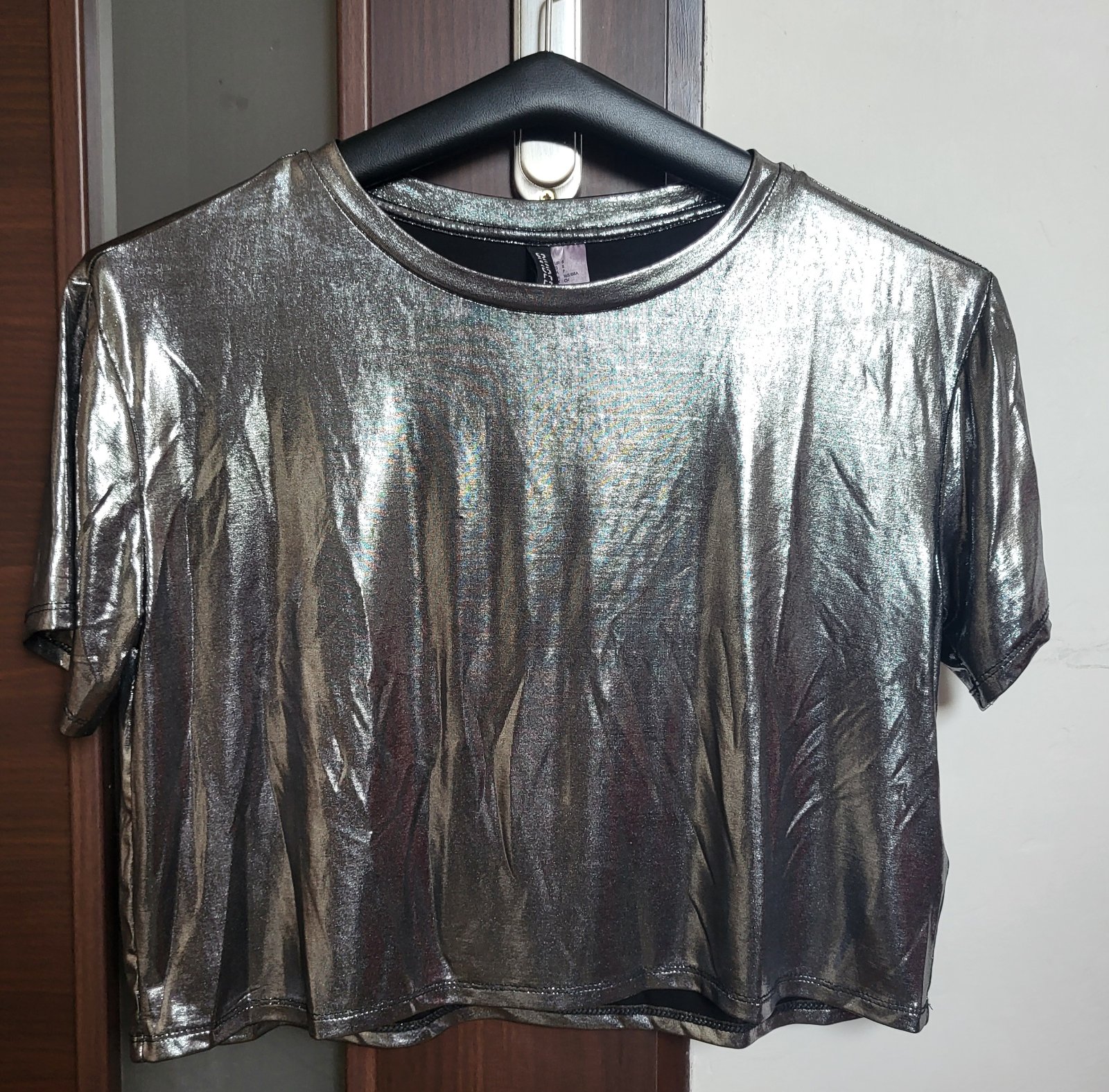 veľmi dobrý stav, malé povrchové zatiahnutie no nič hrozné, metalické, padavé, pohodlné, voľný strih, chladivý efekt, strih do pása, sedí až do L, celková dĺžka 43cm a šírka pod pazuchami 55x2, poštovné doporučene alebo obyčajne